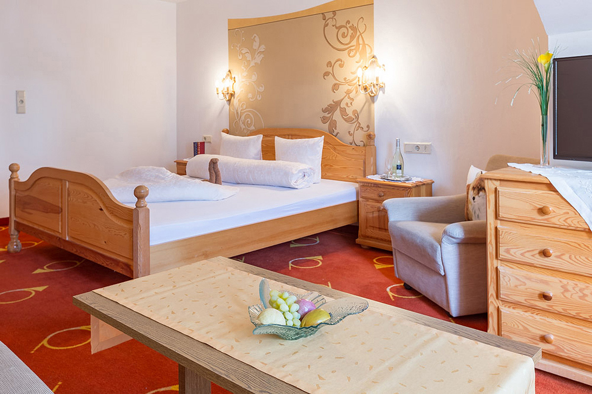 pokoj s manželskou postelí a případně rozkládacím gaučem pro 1 dítě do nedovršených 18 let, sociální zařízení, balkon