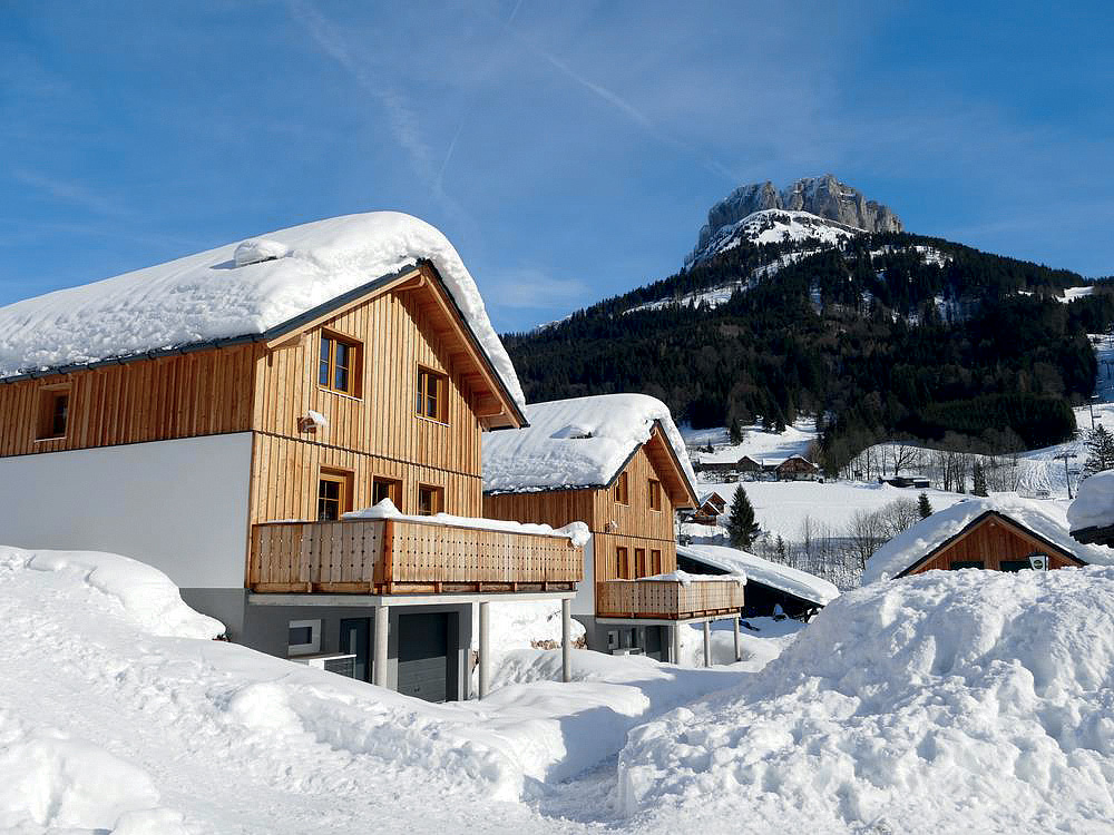 malá vesnička pouze se 7 chalety až pro 12 osob s komfortní výbavou včetně privátní sauny a garáže