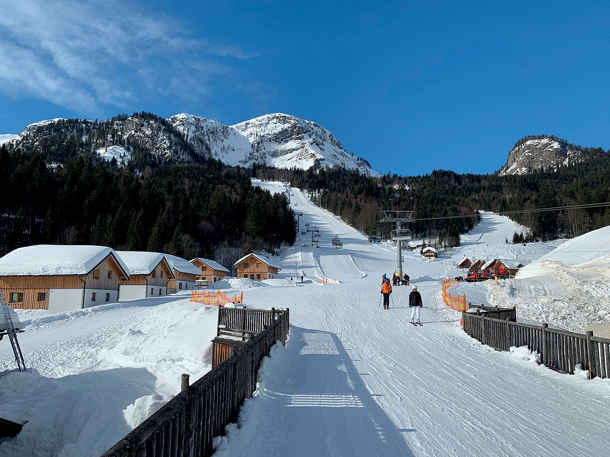 Altaussee, centrum - max. 3 km, skiareál Loser - max. 50 m; za dobrých sněhových podmínek příjezd k chaletům možný přímo na lyžích