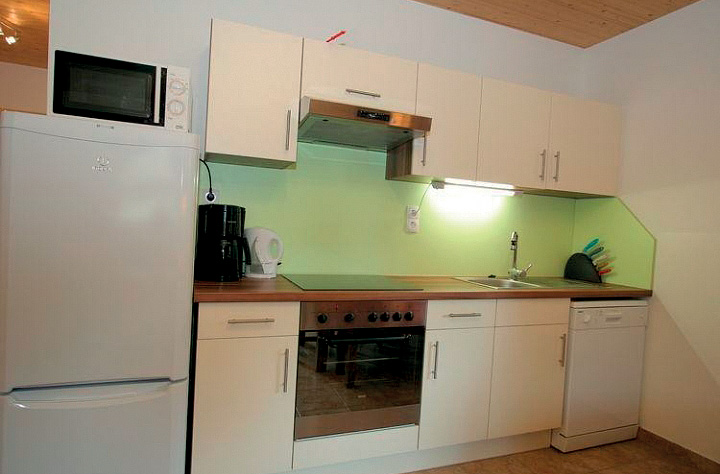 65 až 70 m² - 2 ložnice s manželskou postelí, obývací pokoj s kuchyňským koutem a rozkládacím gaučem pro 1 osobu, sociální zařízení, oddělené WC; na vyžádání možno ubytovat až 6 osob