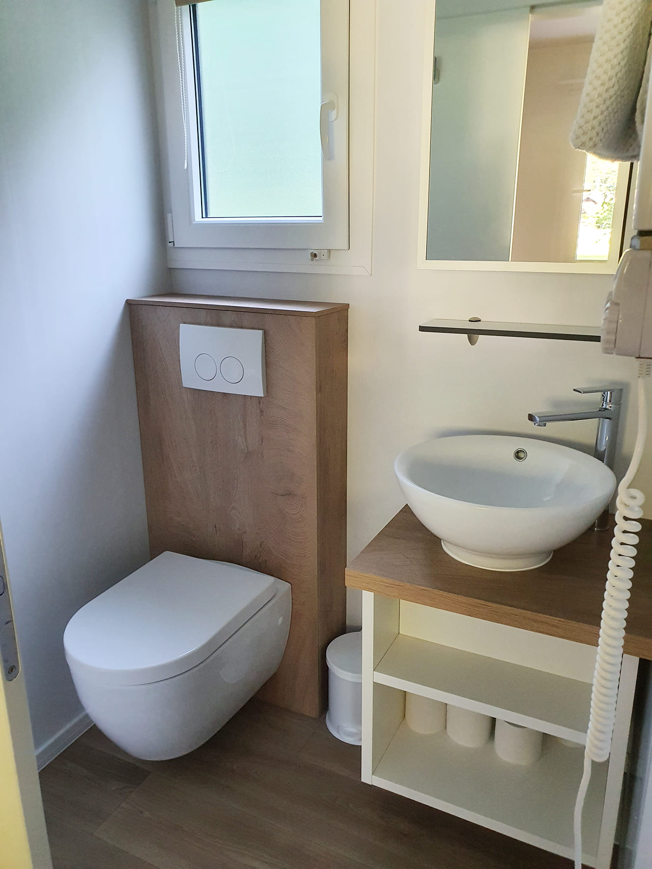 jedná se o resort s 11 chalety, 4 mobilními domy, kempem a "správní" budovou, v níž je k dispozici recepce, restaurace a všechny níže uvedené služby; cesta od recepce k chaletům je do prudkého kopce (lze parkovat přímo u recepce, nebo doporučujeme sněhové řetězy)