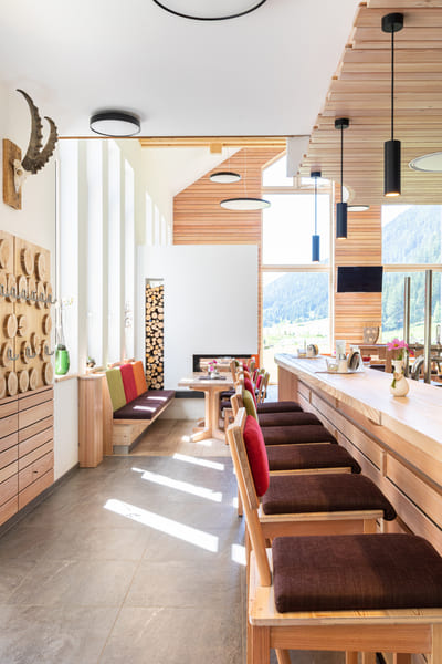 recepce / wi-fi připojení k internetu, à la carte restaurace (v závislosti na otevírací době), bar, sluneční terasa s posezením, dětská herna, úschovna lyží, ranní donáška* čerstvého pečiva na recepci či snídaně do chaletu, vyhrazené parkoviště (1 místo přímo u chaletu, další možnost u správní budovy s recepcí), pračka*, sušička*, nabíjecí stanice elektroaut*