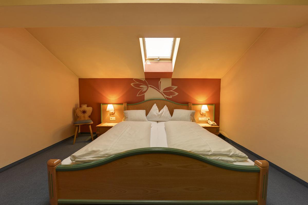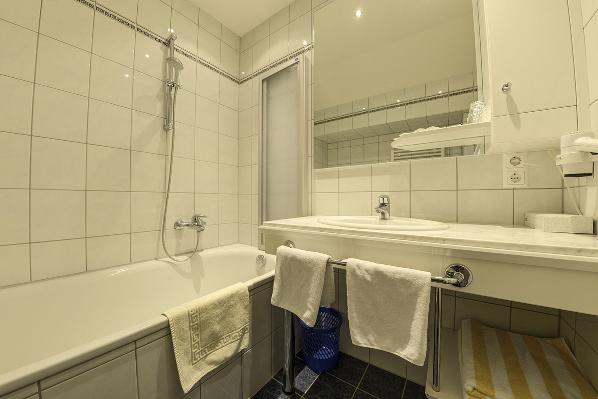 25 m² pokoj s manželskou postelí, sociální zařízení se sprchou či vanou, zpravidla balkon