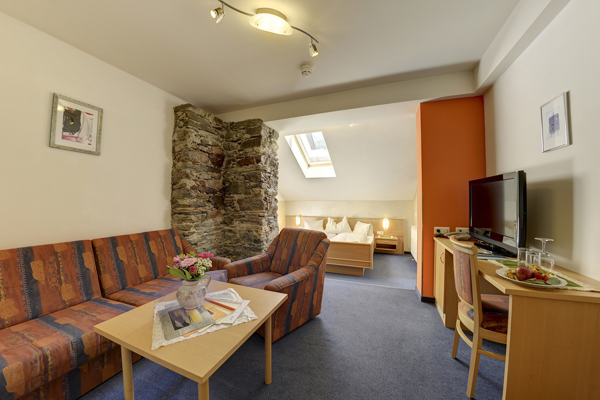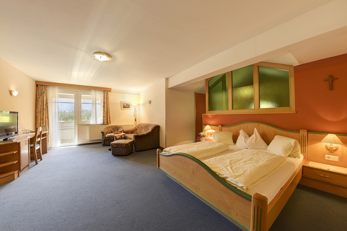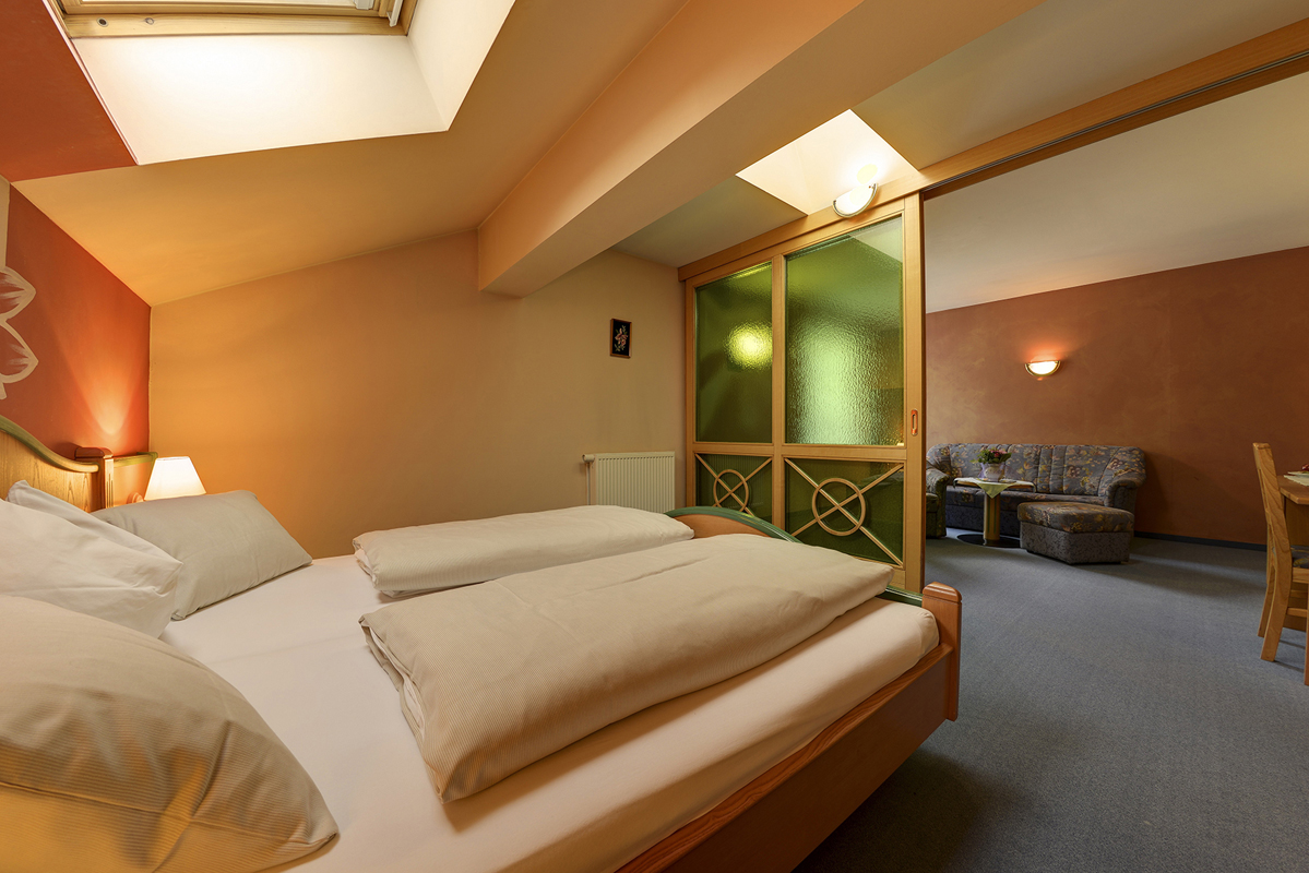 25 až 35 m² pokoj s manželskou postelí a rozkládacím gaučem (140 x 200 cm) až pro 2 děti do nedovršených 17 let či 1 dospělou osobu, sociální zařízení se sprchou či vanou, zpravidla balkon