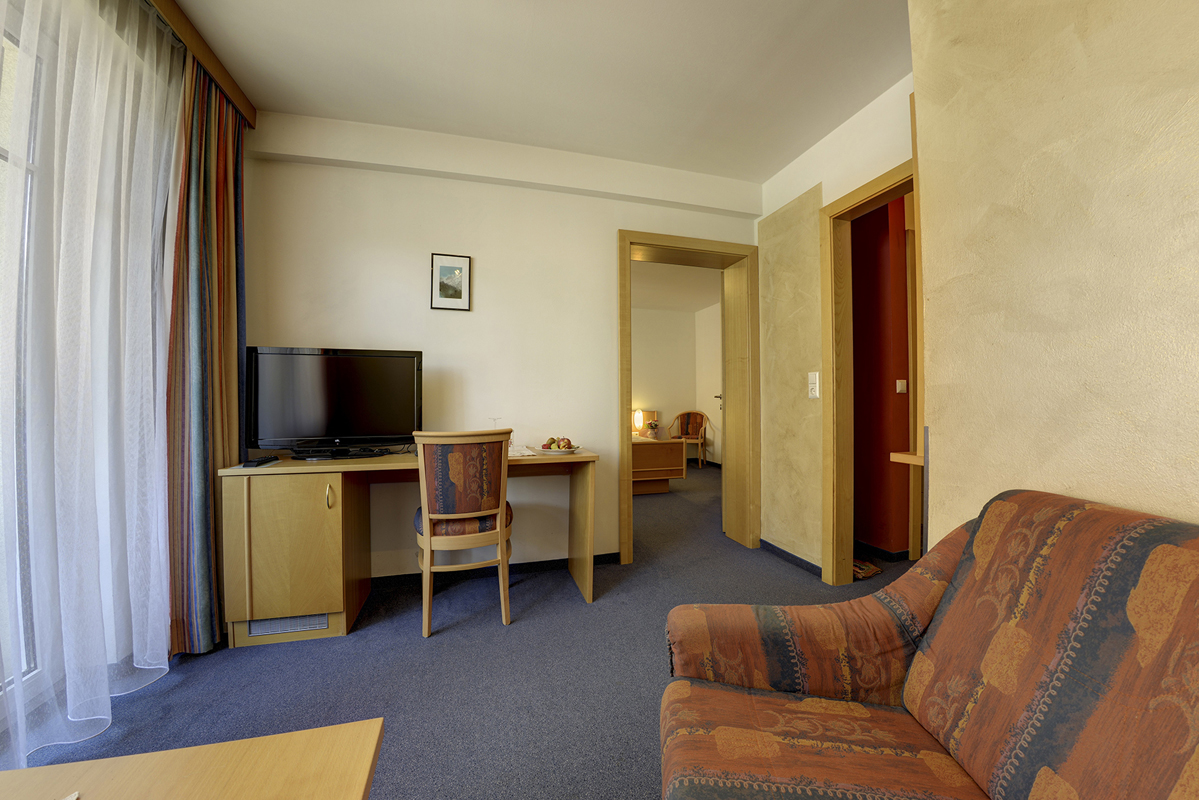 TV sat., telefon, fén, trezor, minibar, wi-fi připojení k internetu, župany do wellness (na vyžádání a jen pro dospělé osoby)