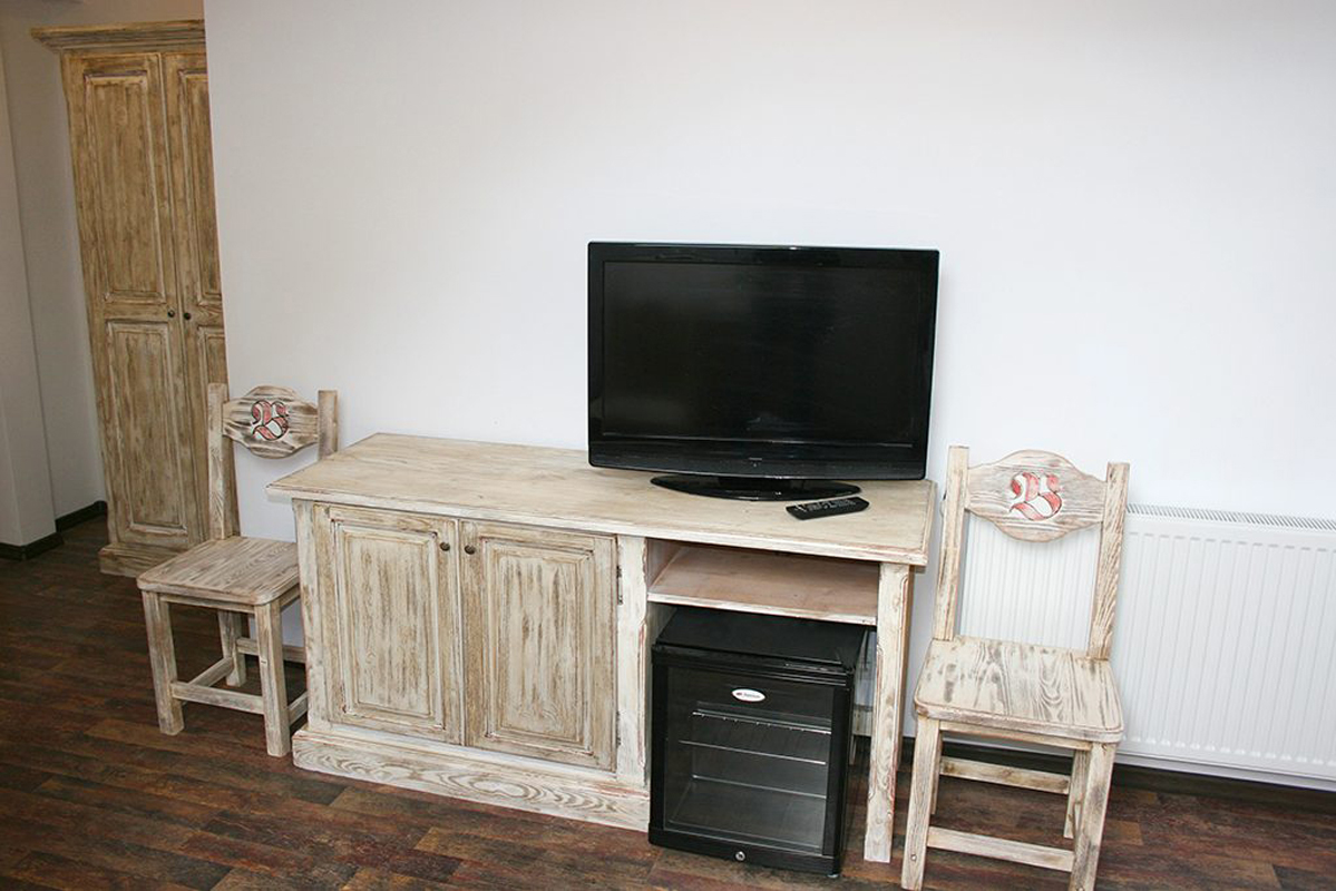 TV sat., zpravidla nápojová lednička, wi-fi připojení k internetu