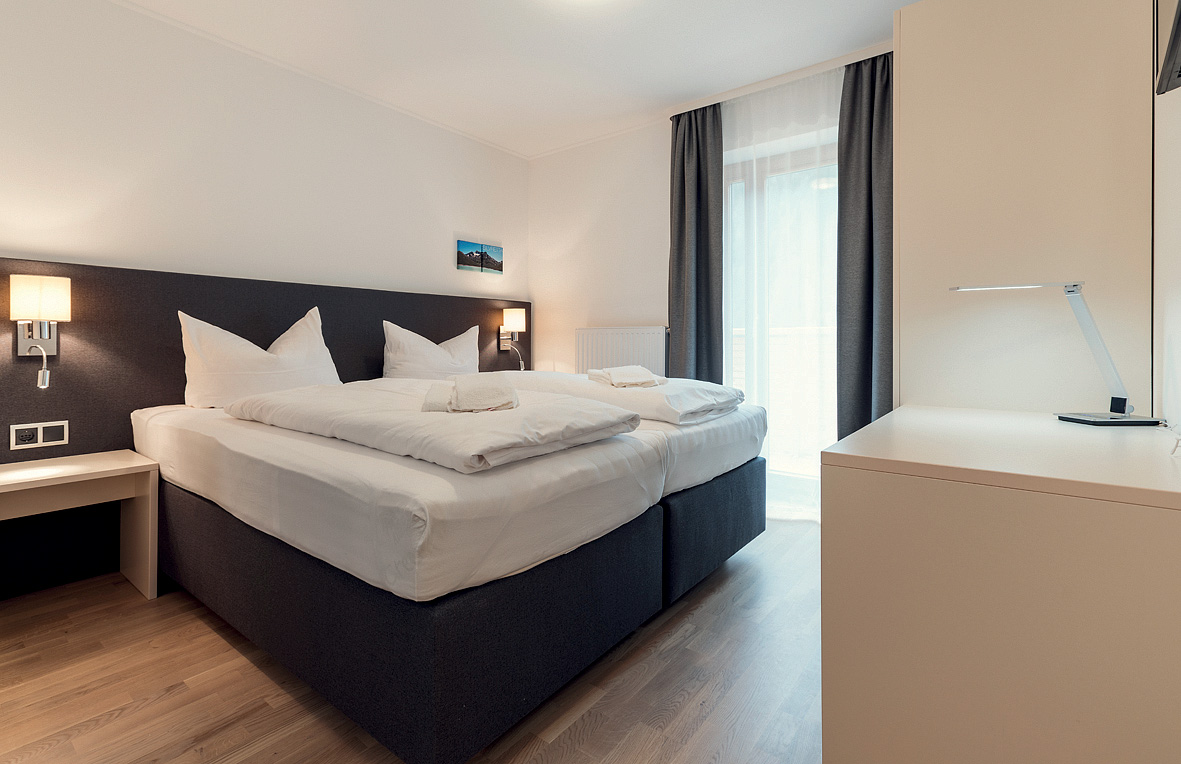 ubytovací komplex skládající se z větších celodřevěných domů s apartmány trilo 6 typ A či B, trilo 6 wellness typ A, quadrilo 8 typ A a quadrilo 8 wellness typ B a volně stojících chaletů a centrální budovy, v níž se nacházejí i všechny níže uvedené služby