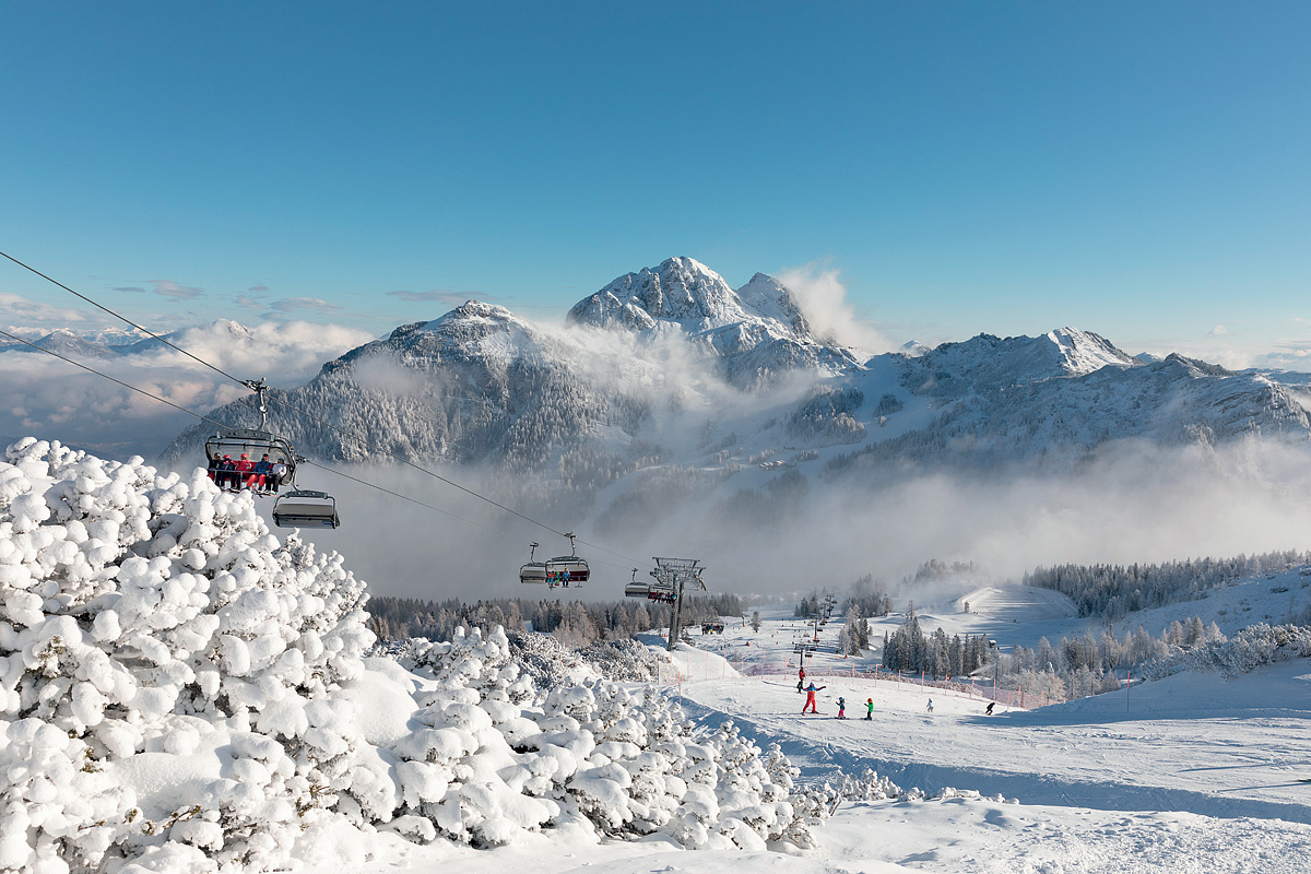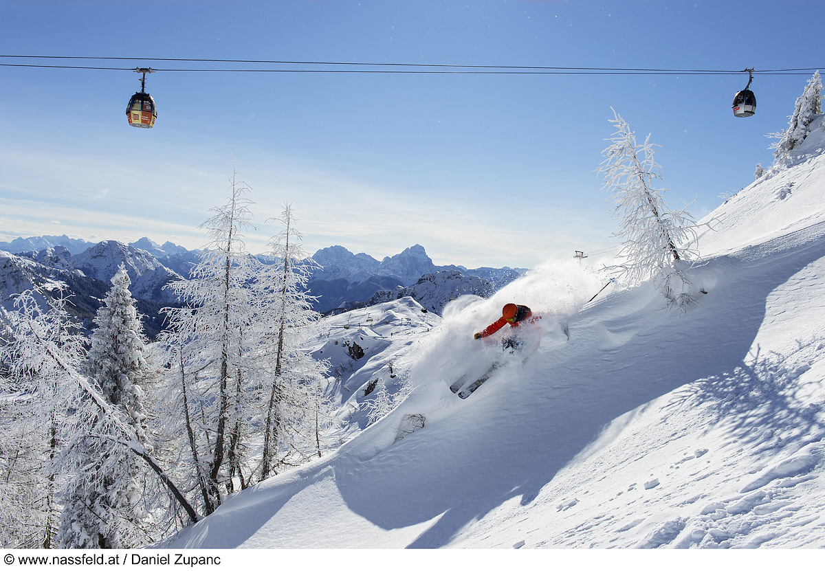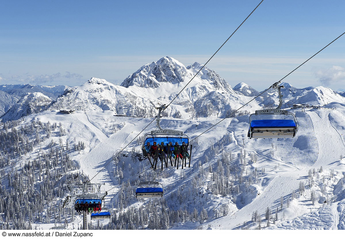 Salzburg, dálnice směr Villach, Tauerntunnel, dálniční sjezd Paternion – Feistritz, Pressegger See, Hermagor, Weißbriach nebo Kirchbach nebo Tröpolach, Sonnenalpe Nassfeld