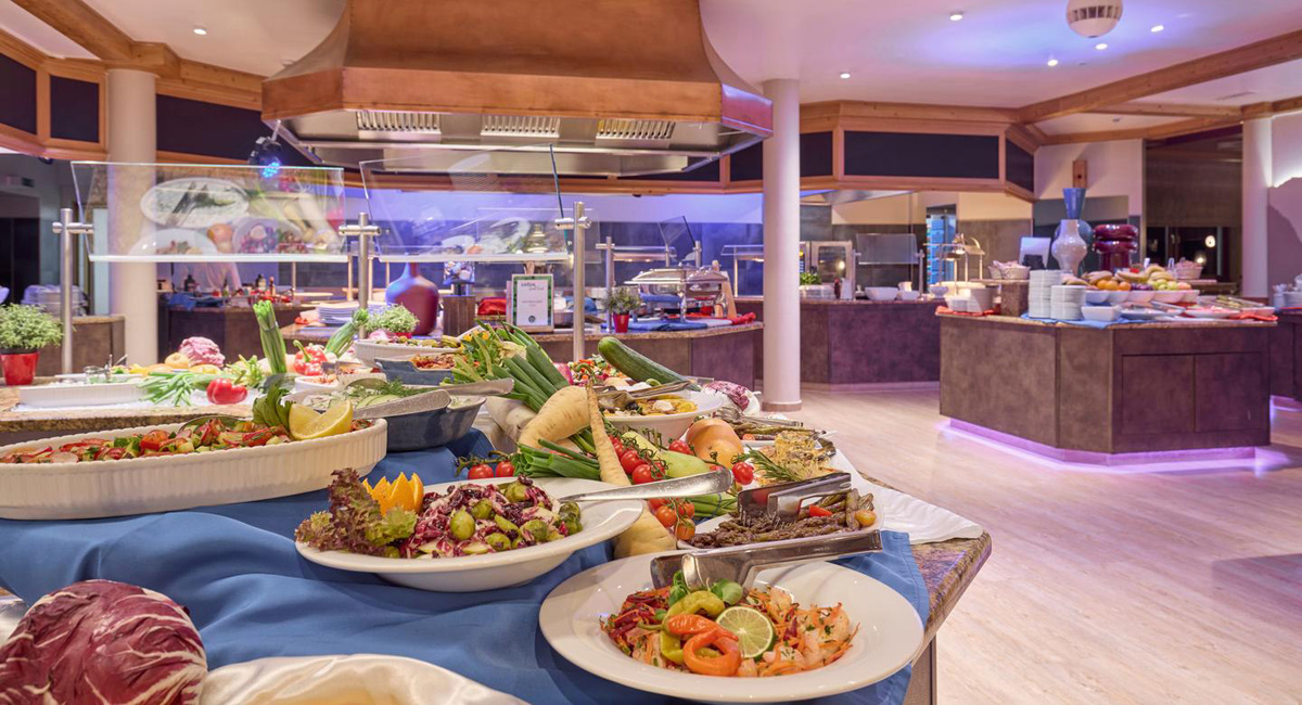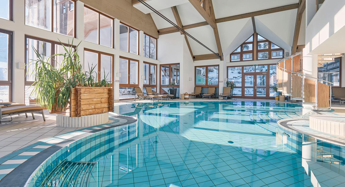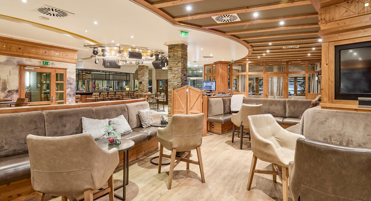 recepce / lobby, restaurace vyhrazená pro hotelové hosty, 2x bar, hotelové divadlo, dětský klub "Flosse club" (hlídací služba dětí od 2 do 6 let / animační programy (v němčině či angličtině), disco "Blue Dolphin", wi-fi připojení k internetu, úschovna lyží a lyžařských bot, výtah, garážová stání (vjezd pro auta max. výška 2 metry); lyžařské skupinové kurzy pro děti od 4 let (snowbordové kurzy pro děti od 10 let) a dospělé (kurzy pro začátečníky začínají vždy pouze v neděli!!)