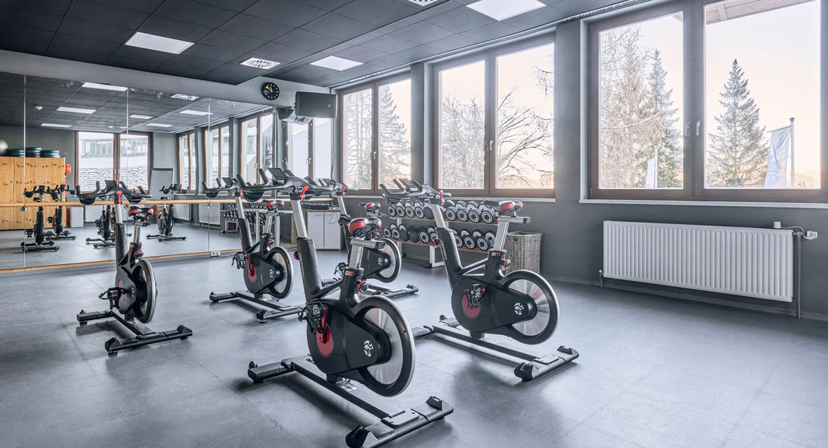 bazén atypického tvaru, sauna s panoramatickým výhledem, pára, relaxační koutek s lehátky, velká posilovna s cardio zónou, masáže*, kosmetické služby*, fyzioterapie*