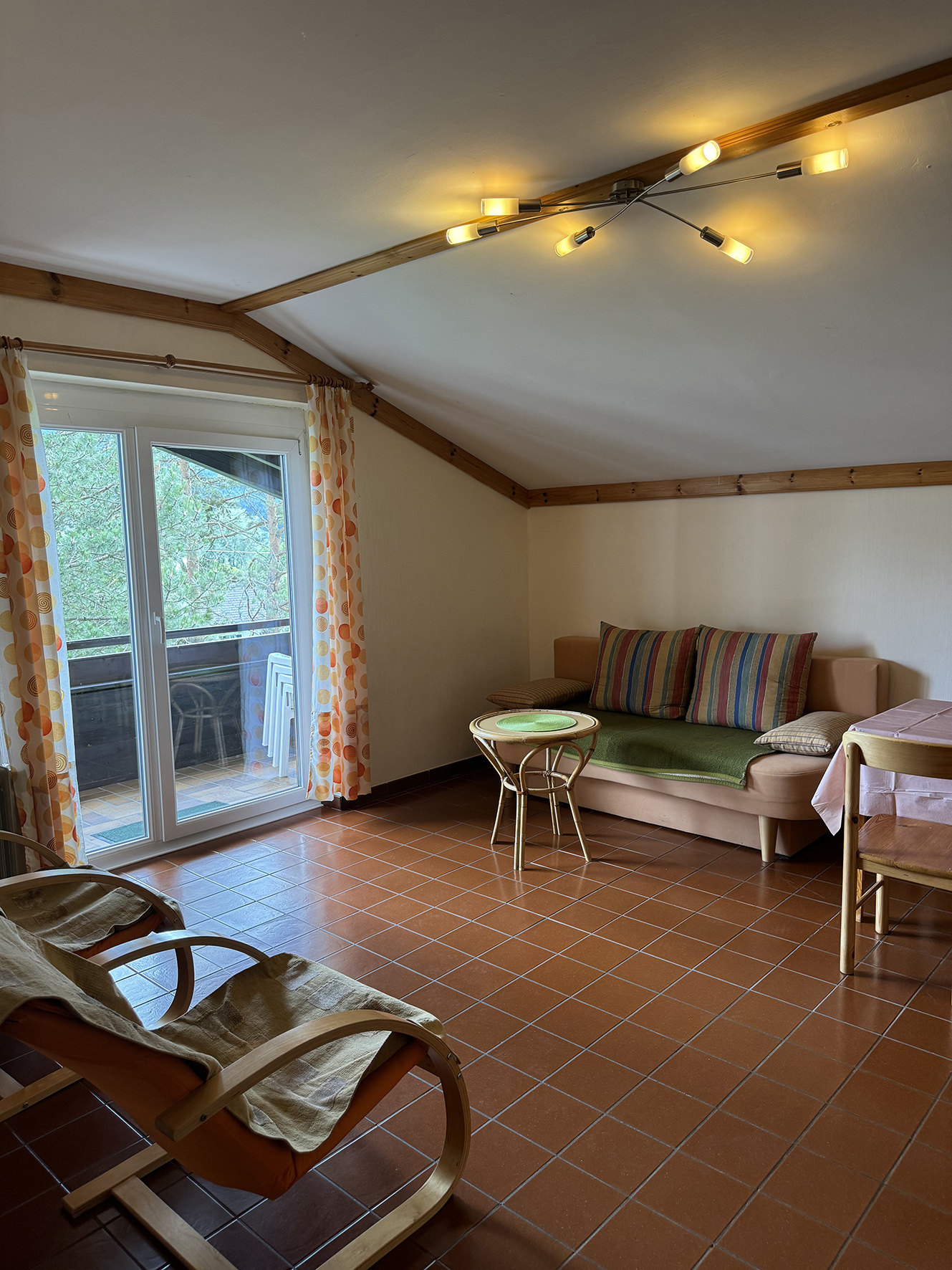 bilo 4 - 30 m² - ložnice s manželskou postelí (šíře 140 cm) částečně oddělená obytnou stěnou od obývacího pokoje, obývací pokoj s kuchyňským koutem a rozkládacím gaučem (šíře 135 cm) pro 2 osoby, sociální zařízení, balkon; byty jsou v 1. a 2 patře; 1. byt v přízemí, který je spíše doporučován v obsazenosti 2 dospělých osob