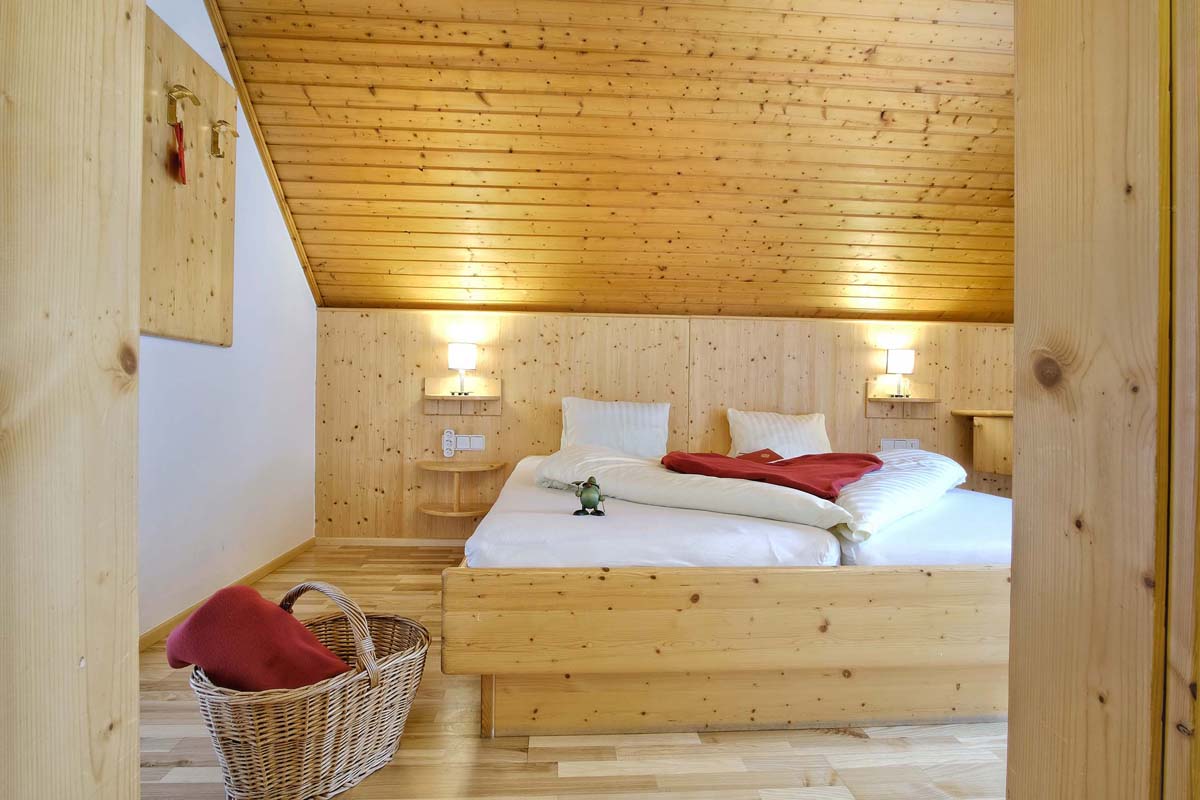 30 m² - ložnice s manželskou postelí, obývací pokoj s rozkládacím gaučem až pro 2 děti do nedovršených 20 let, sociální zařízení, balkon (pokoje zpravidla v podkroví se sešikmeným stropem)