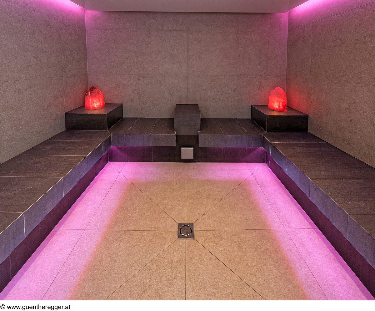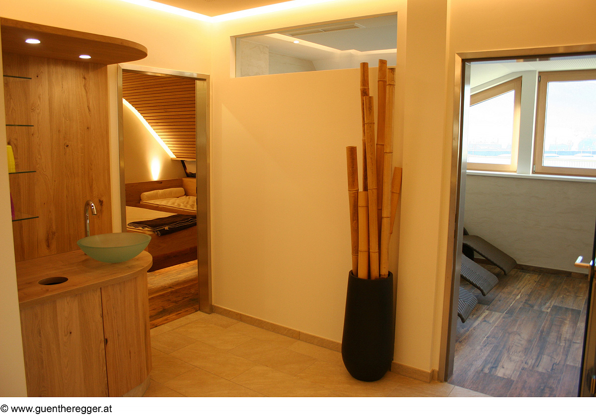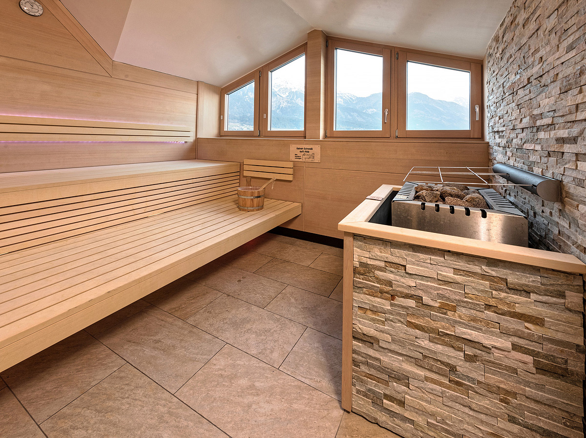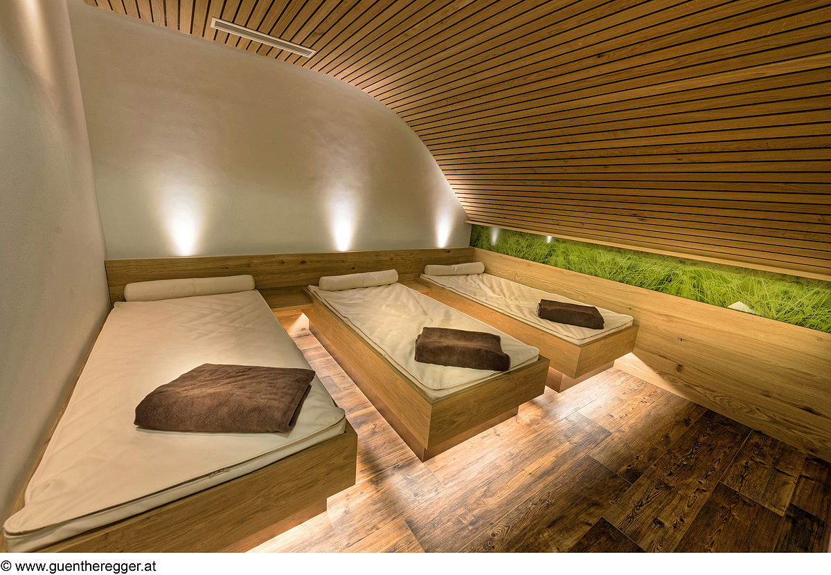 panoramatická finská sauna, bio sauna, aromatická pára, ledová sprcha, relaxační koutek s lehátky a vodními lůžky