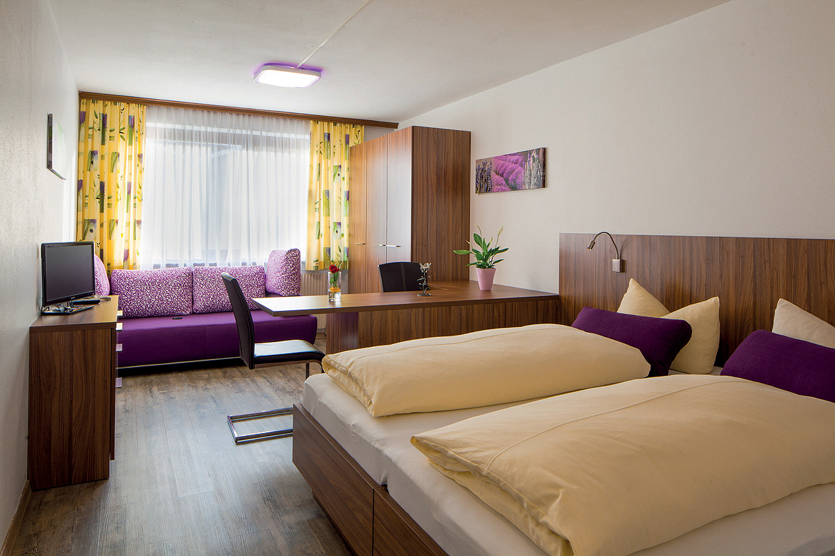 Standard 4 - 26 m² - pokoj s manželskou postelí a případně rozkládacím gaučem až pro 2 osoby, sociální zařízení se sprchou či vanou, asi z 50% balkon