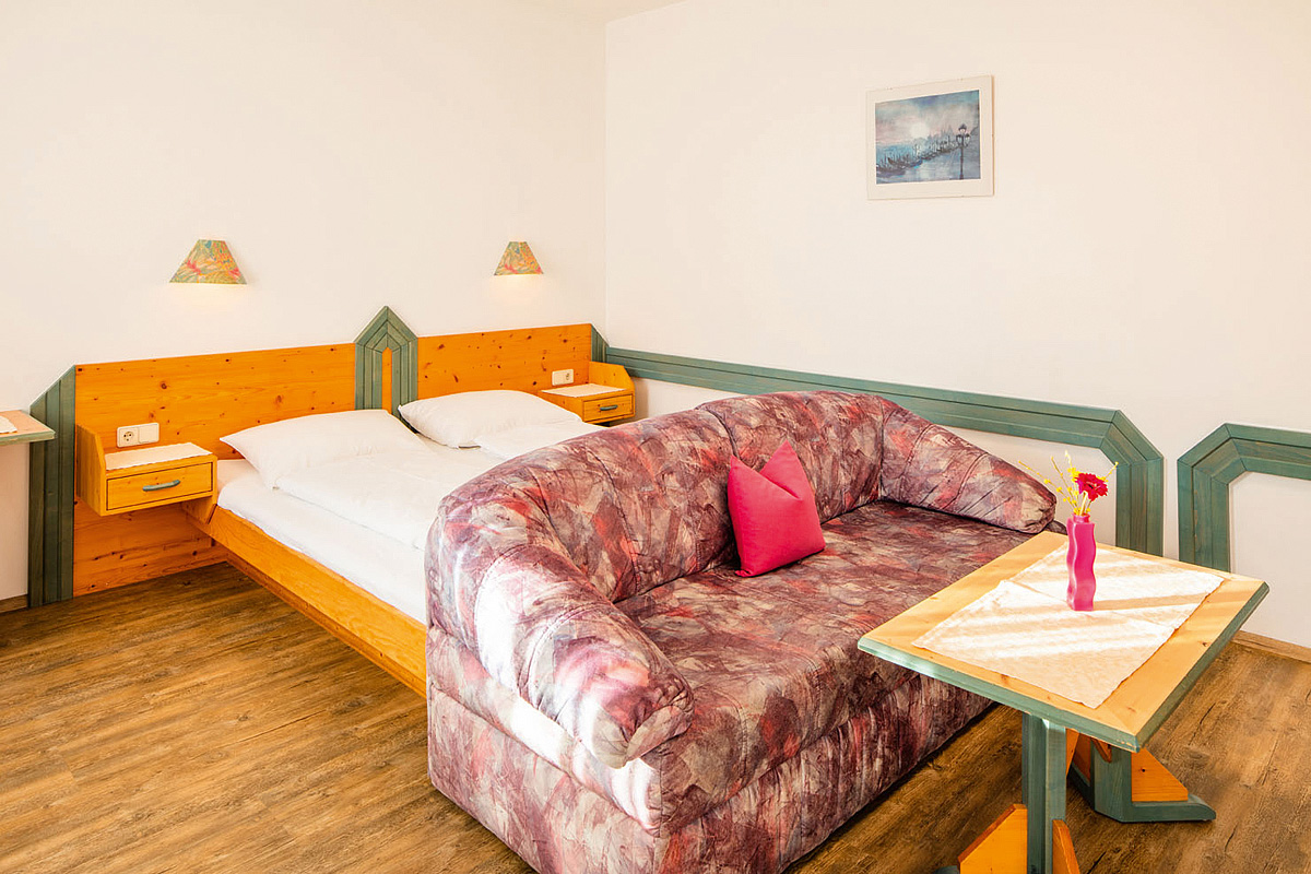 Standard 3 - 23 m² - pokoj s manželskou postelí a případně rozkládacím gaučem pro 1 osobu, sociální zařízení se sprchou či vanou, asi z 50% balkon