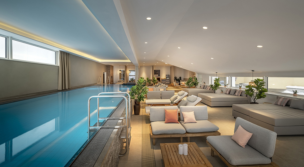Balance SPA o velikosti 720 m² - bazén 66 m², venkovní vyhřívaný bazén 32°C 22 m², finská sauna, bio sauna, infrasauna, aromatická pára, ledová jeskyně, relaxační koutek s vyhřívanými lavicemi, lehátky a nápojovým barem, masáže*, kosmetické služby*, posilovna s cardio zónou 48 m²; cvičební programy (např. jóga atd.)
