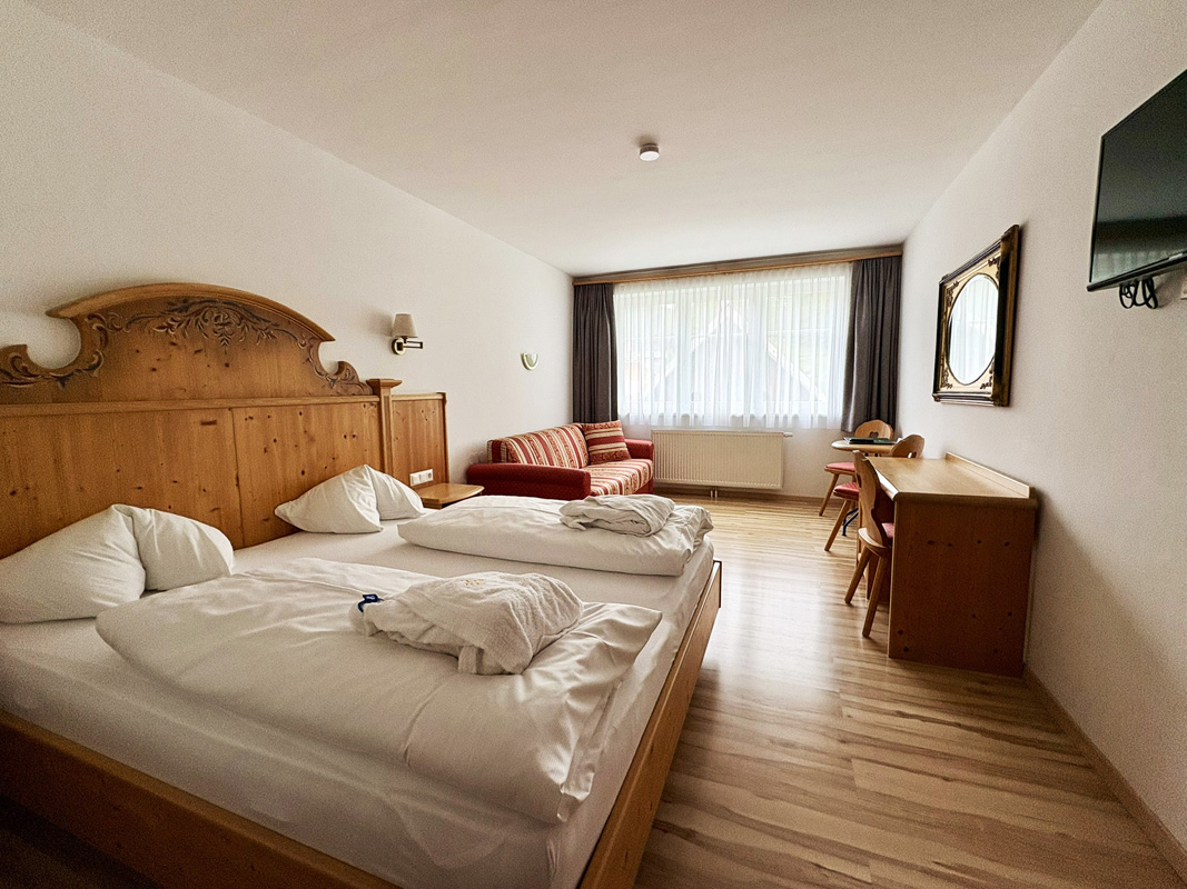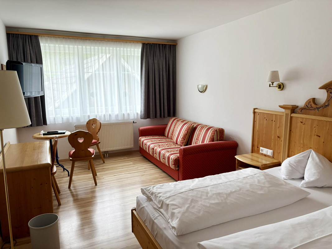komfortní pokoj s manželskou postelí a případně rozkládacím gaučem pro 1 osobu, sociální zařízení