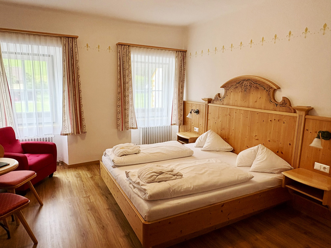 pokoj s manželskou postelí, sociální zařízení (zpravidla po rekonstrukci); pokoj lze také obsadit 2 dětmi do nedovršených 18 let se slevou viz ceník