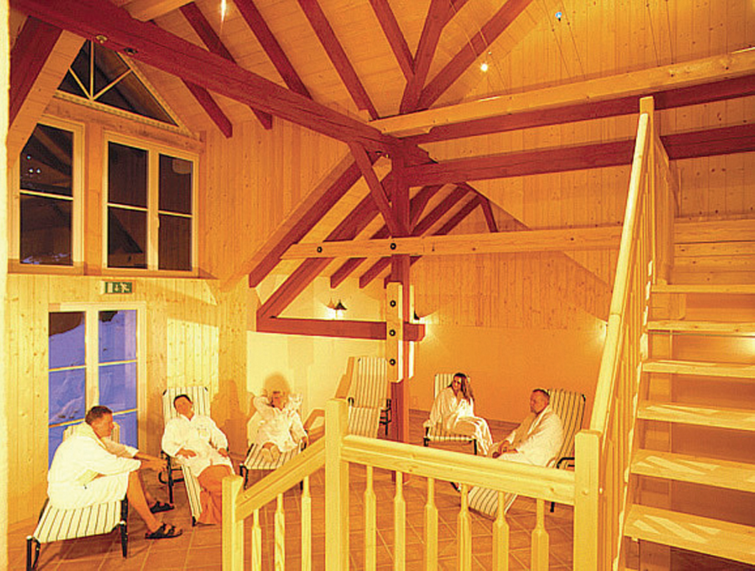 finská sauna#, bio sauna#, pára#, infrakabina#, relaxační koutek s lehátky a vyhřívanými lůžky, masáže*, jízda na saních tažených koňmi*; v rámci relaxačního centra jsou zdarma nabízeny bylinkové čaje; služby označené # mohou děti využívat jen v doprovodu dospělé osoby