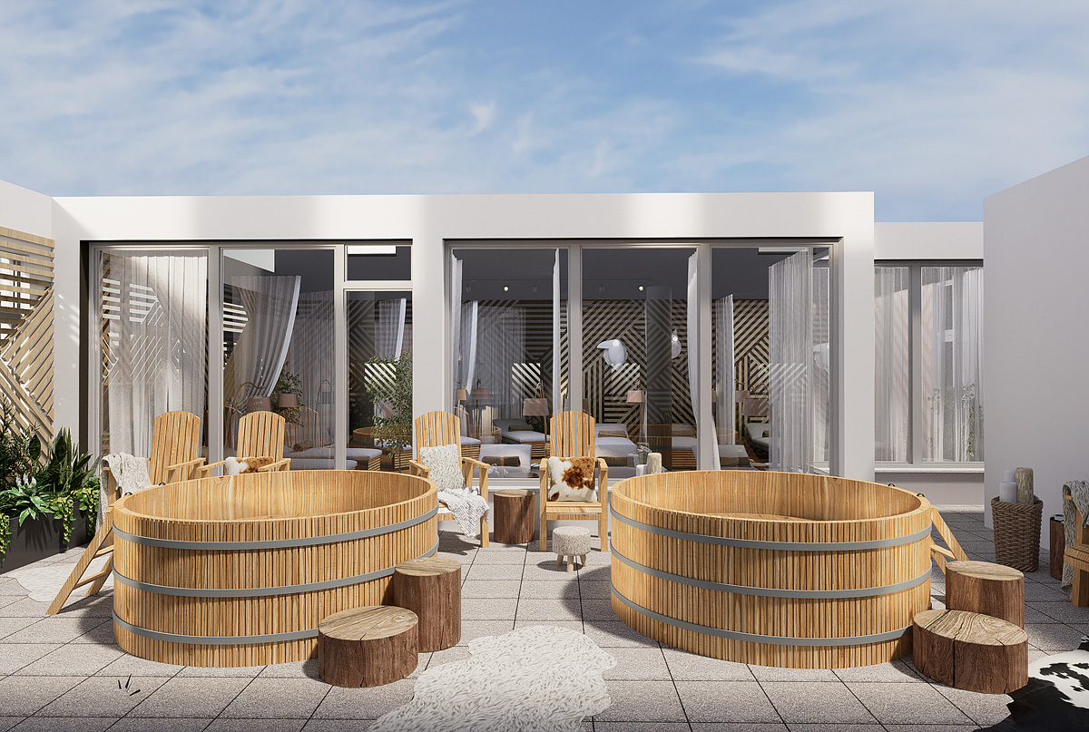 bazén 7 x 4 m, vířivka, venkovní "kelo" sauna, venkovní panoramatická sauna, finská sauna, pára, relaxační koutek s lehátky; posilovna, masáže*, kosmetické služby*, biliár*, stolní tenis*