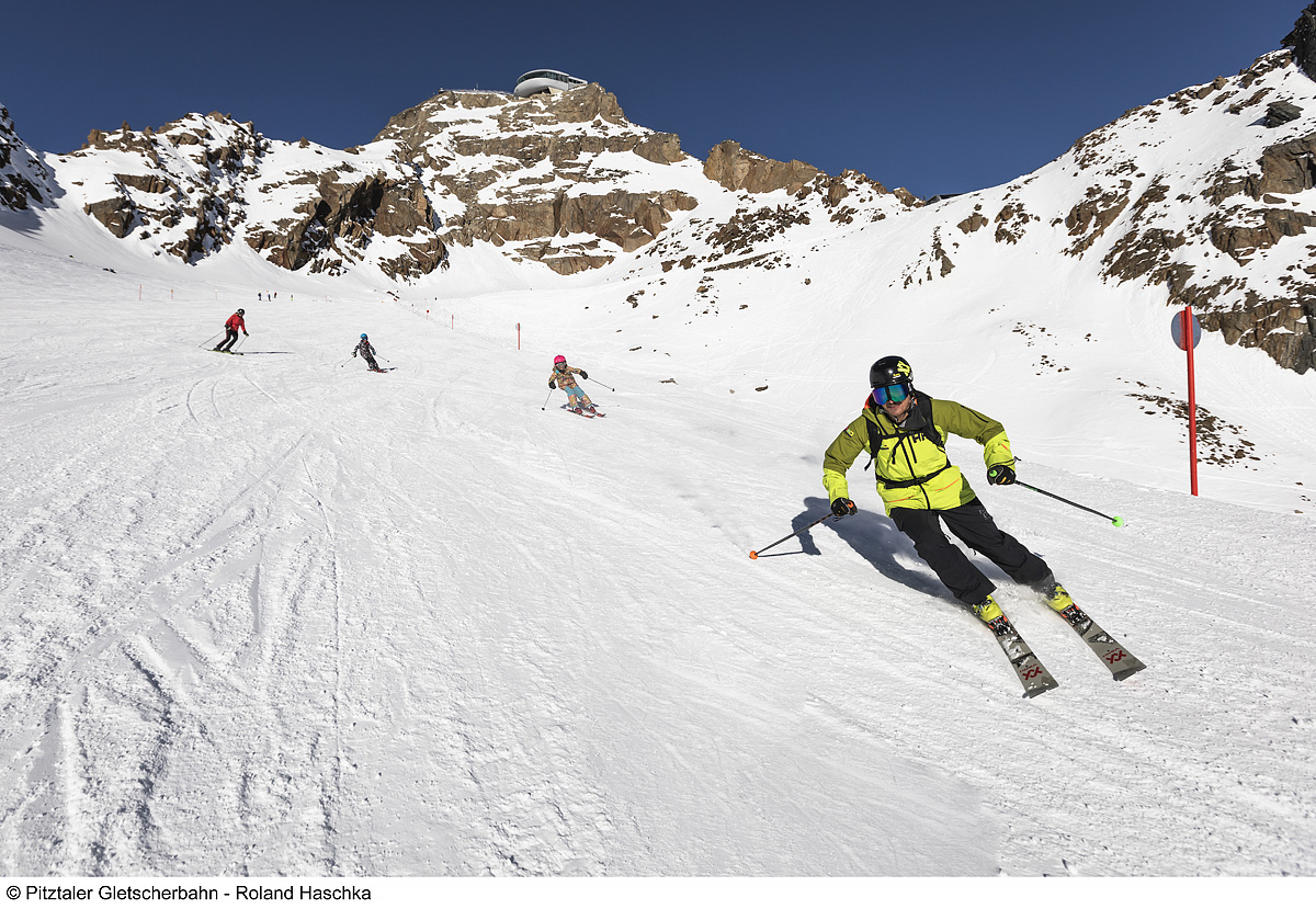 platí pro ledovec Pitztaler Gletscher a skiareál Rifflsee; skipasy od 4 dnů jsou za příplatek nabízeny také ve variantách „PLUS“ platných max. 1 až 2 dny na ledovci Kaunertaler Gletscher či ve skiareálu Hochzeiger