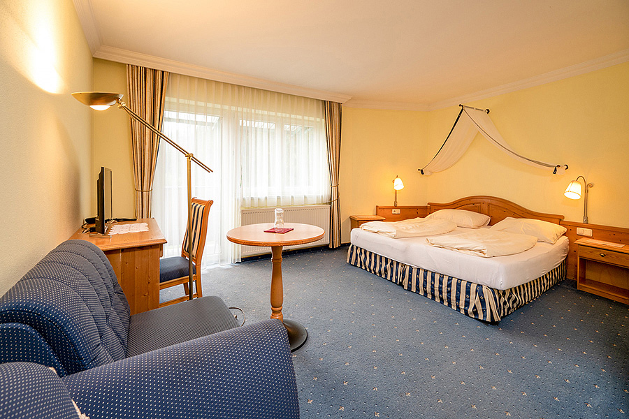 Standard 2+2 - pokoj s manželskou postelí, 3. a 4. lůžka formou rozkládacího gauče či křesla pro 1 až 2 děti do nedovršených 16 let, sociální zařízení, balkon