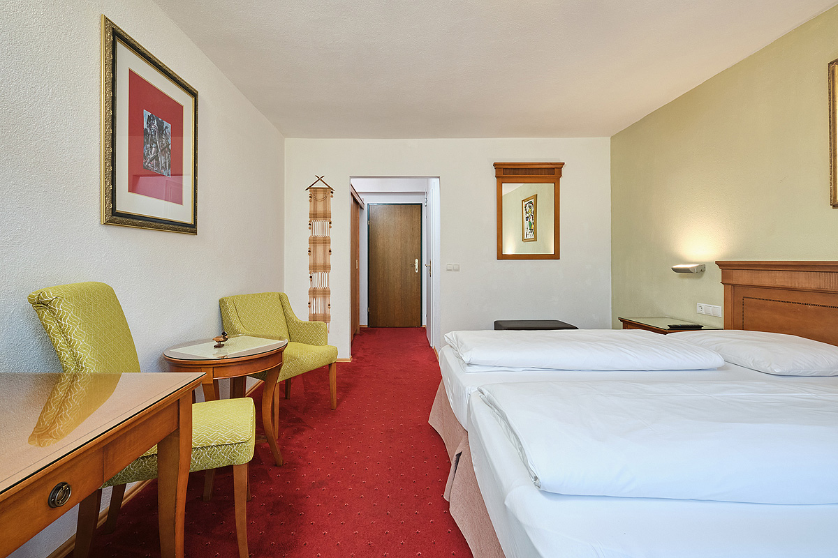 21 m² - pokoj s manželskou postelí a případně přistýlkou pro 1 osobu, sociální zařízení se sprchou či vanou, balkon