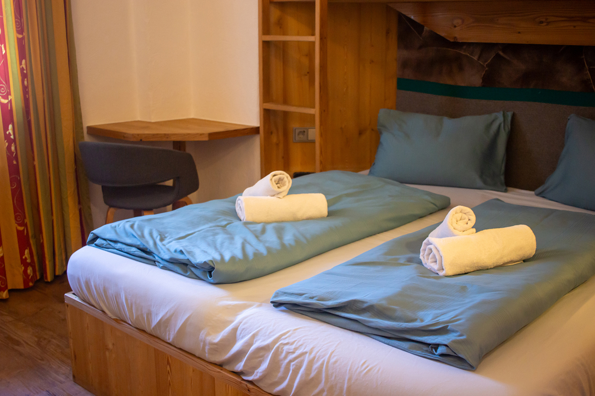 20 až 25 m² - pokoj s manželskou postelí a 2 samostatnými lůžky či palandou pro 2 osoby, sociální zařízení, zřídka balkon