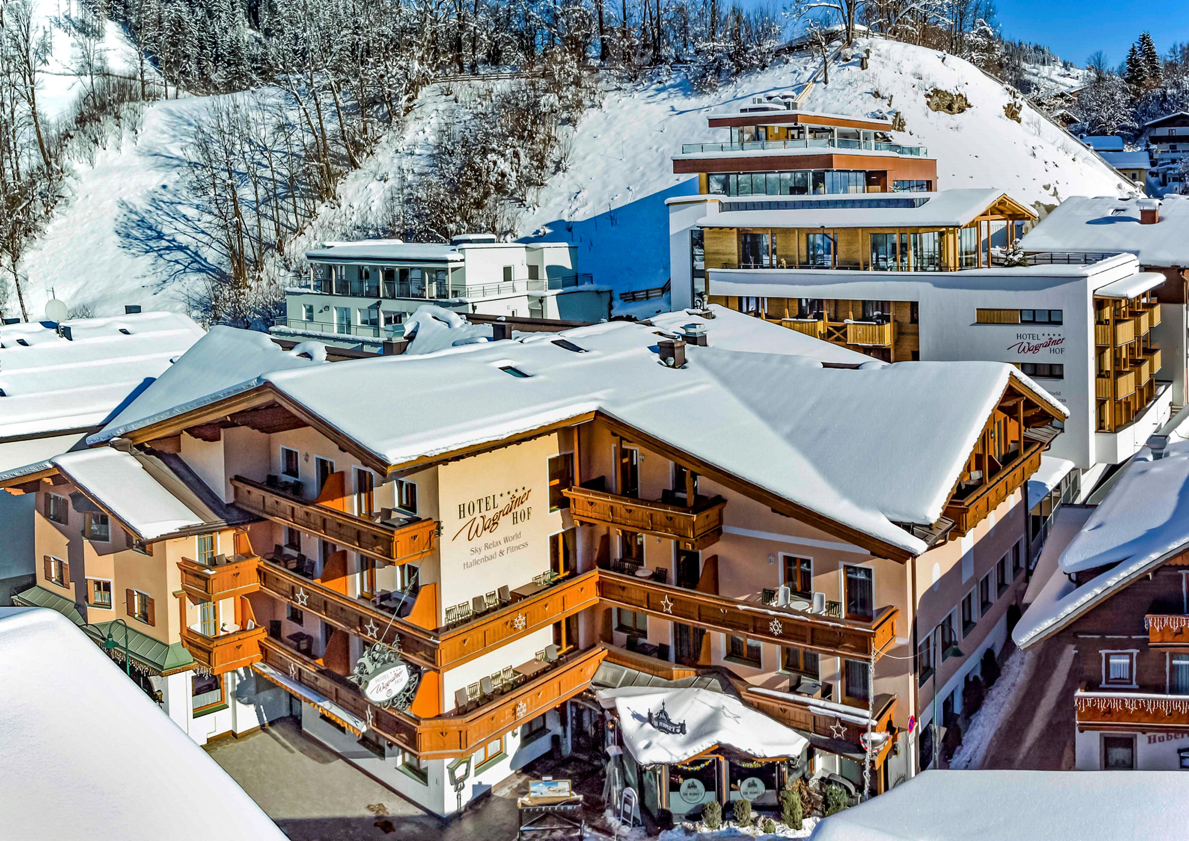 malá recepce, à la carte restaurace "Wagrainerhof", stylová restaurace " Jägerstube", bar "The People´z", wi-fi připojení k internetu, dětský koutek, dětská herna s hracími automaty*, dětské kino, úschovna lyží a lyžařských bot, 2x výtah, vyhrazené parkoviště, nabíjecí stanice elektroaut*
