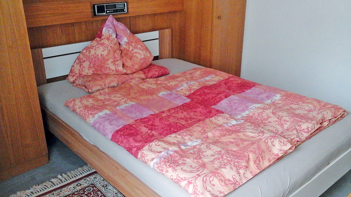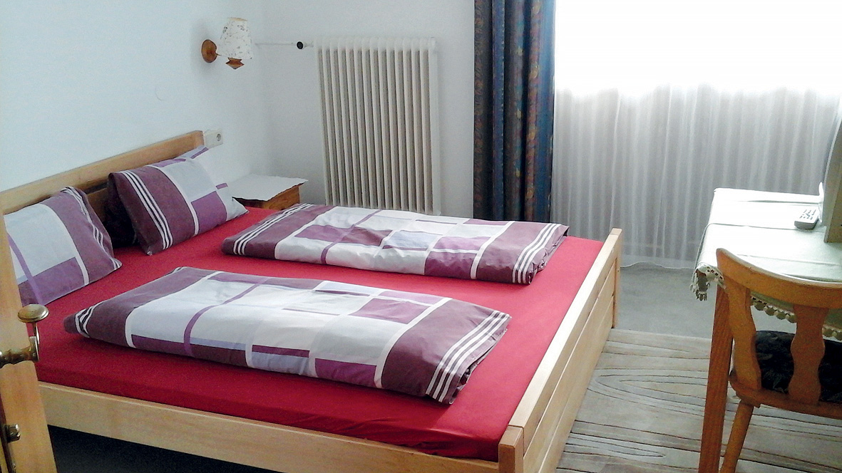14 m² - pokoj s manželskou postelí, sociální zařízení, asi z 50% balkon; infant nad rámec maximální obsazenosti pokoje není povolen!