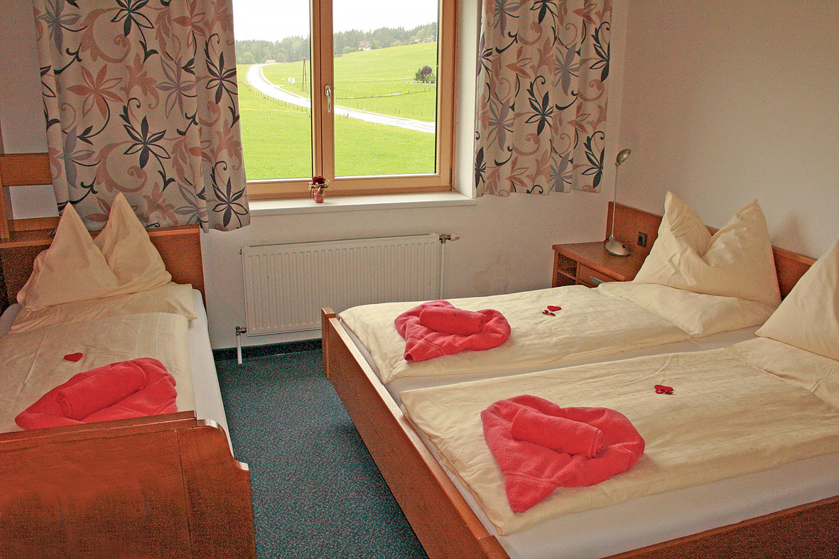 20 m² - pokoj s manželskou postelí a přistýlkou pro dítě do nedovršených 15 let , sociální zařízení se sprchou; minimální obsazenost 3 osoby