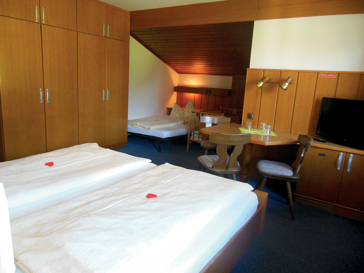 23 m²- pokoj s manželskou postelí a samostatným lůžkem pro 1 osobu, sociální zařízení s vanou; minimální obsazenost 3 osoby