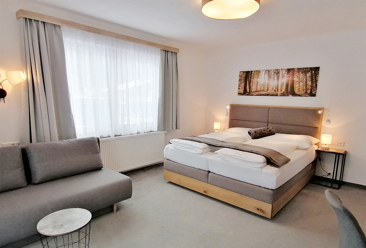 25 m² - pokoj s manželskou postelí a rozkládacím gaučem pro 2 osoby, sociální zařízení