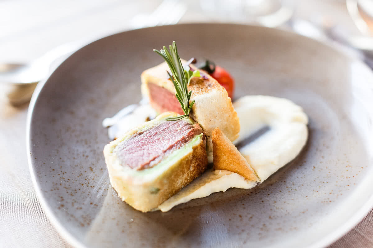 večeře - servírované 5chodové menu s výběrem hlavních jídel s přílohou, servírovaný teplý předkrm či polévka, zpravidla servírovaný studený předkrm, servírovaný dezert, salátový bufet, nápoje za poplatek