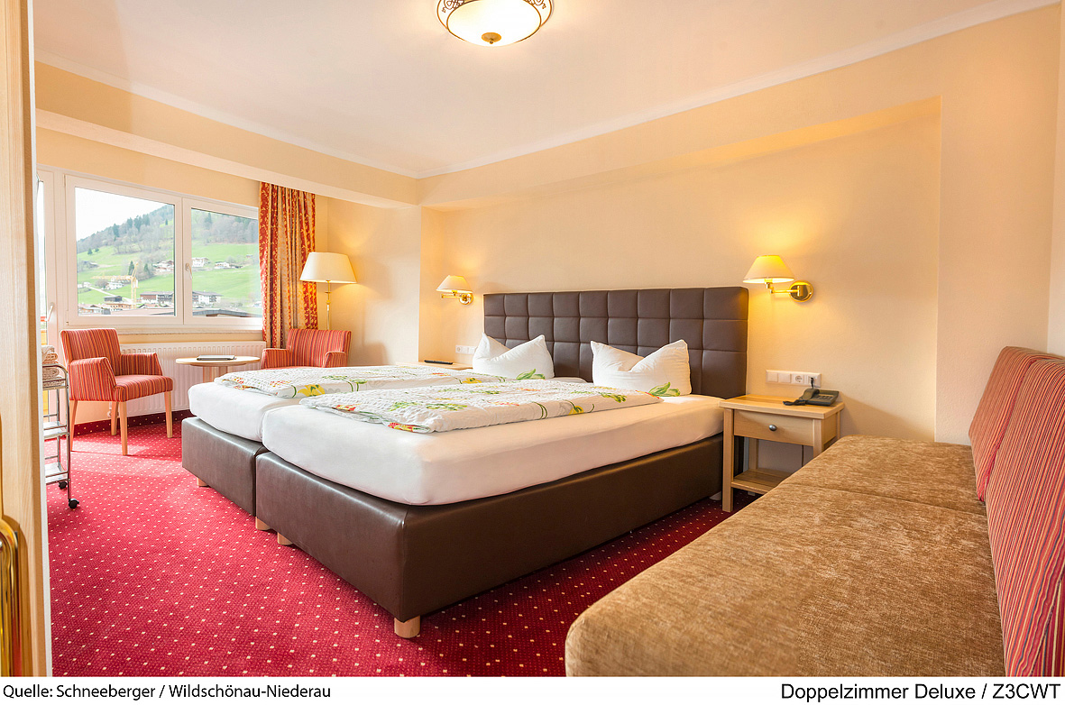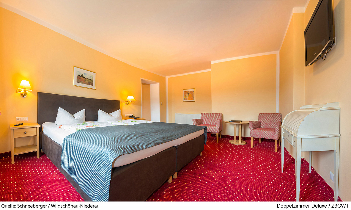 Deluxe 3 - 20 - m² - pokoj s manželskou postelí a případně rozkládacím gaučem pro 1 osobu, sociální zařízení, balkon