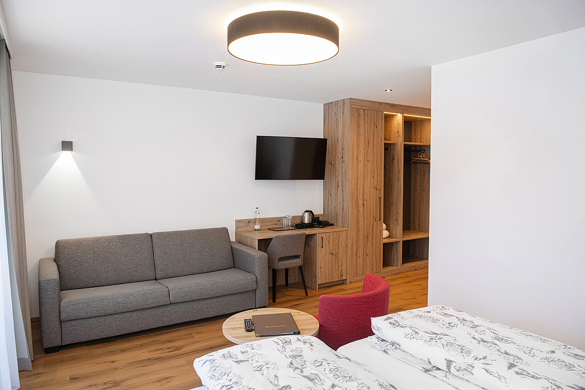 Family 4 Deluxe - 24 m² - pokoj s manželskou postelí a případně rozkládacím gaučem pro 1 až 2 osoby, sociální zařízení, balkon