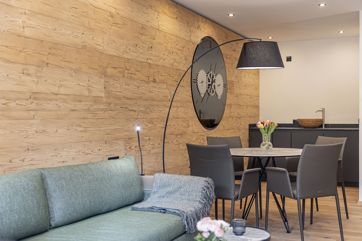 80 až 100 m² - 2 ložnice s manželskou postelí, obývací pokoj s rozkládacím gaučem až pro 2 osoby, 2x sociální zařízení, oddělené WC, finská sauna s další sprchou, venkovní vířivka, balkon či terasa; apartmán v horním patře s vysokými stropy