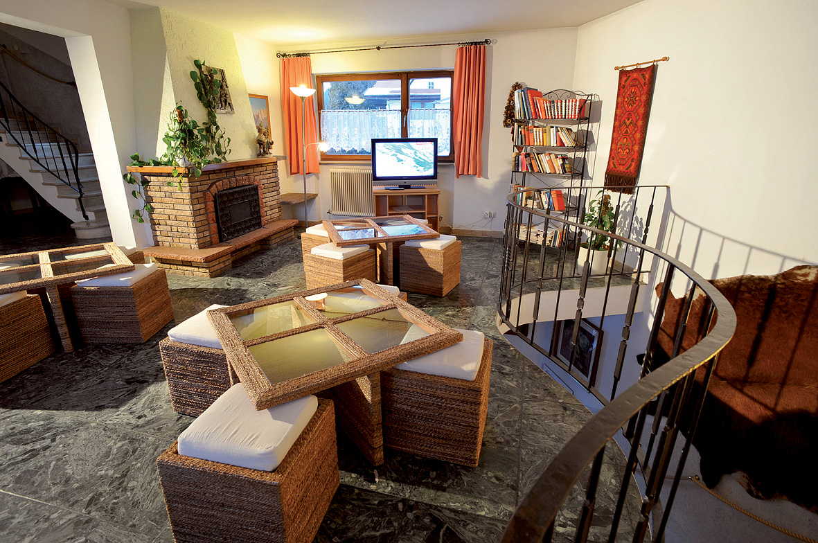 recepce / lobby / wi-fi připojení k internetu, restaurace vyhrazená pro hotelové hosty / bar, společenská místnost, úschovna lyží a lyžařských bot, veřejné parkoviště - cca 200 m