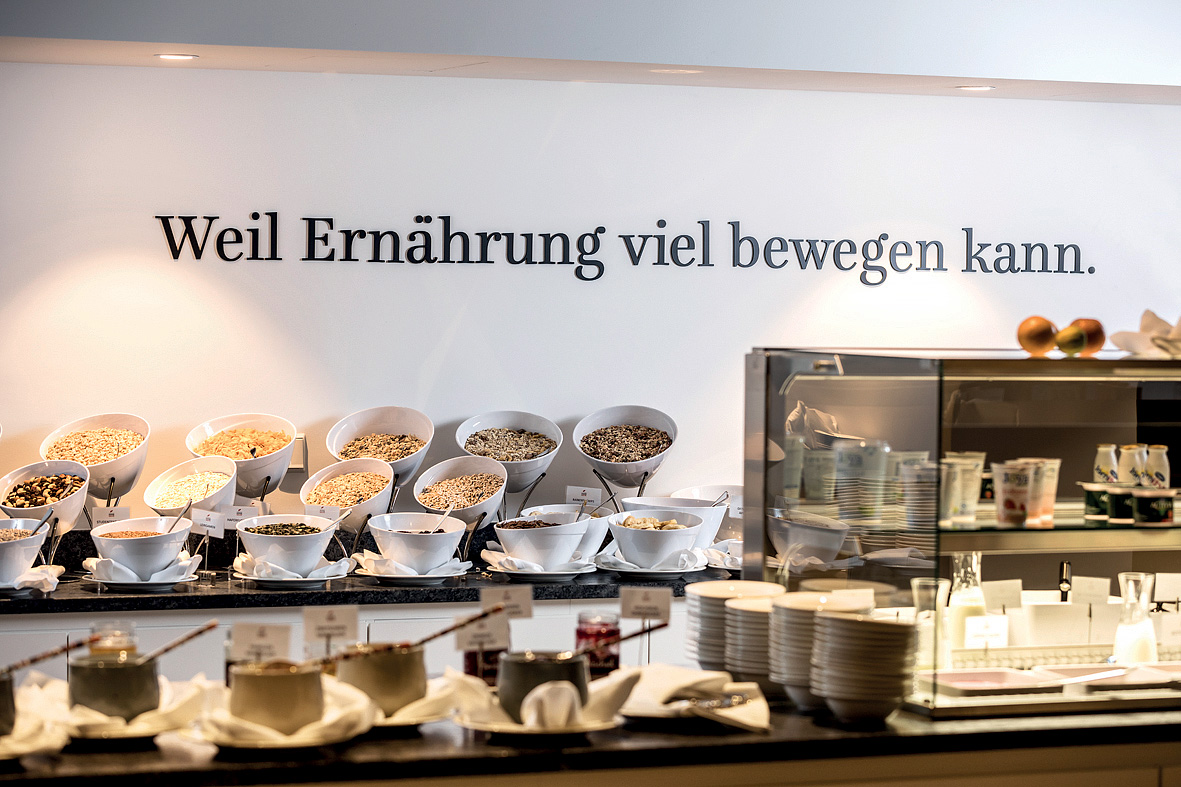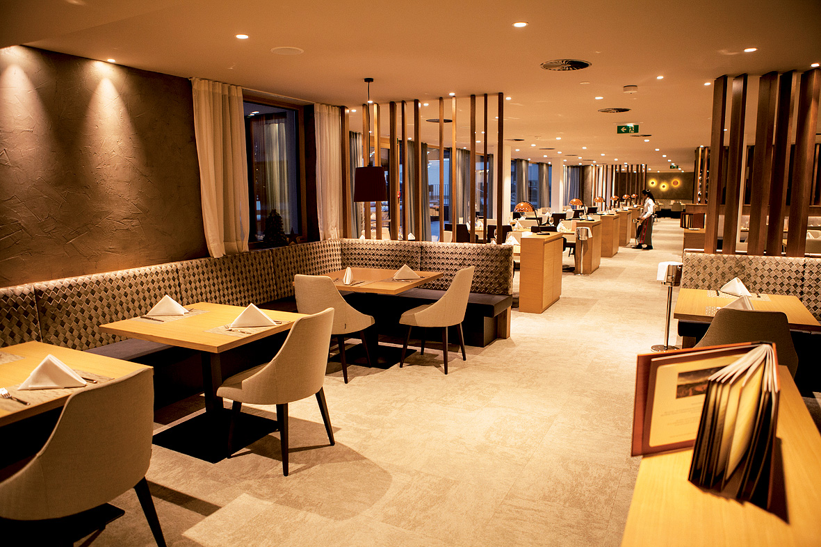 servírované 5chodové menu s výběrem ze 3 až 4 hlavních jídel s přílohou, servírovaný studený předkrm a polévka, salátový bufet, servírovaný dezert, cca 2x týdně večeře formou tematického bufetu; nápoje za poplatek