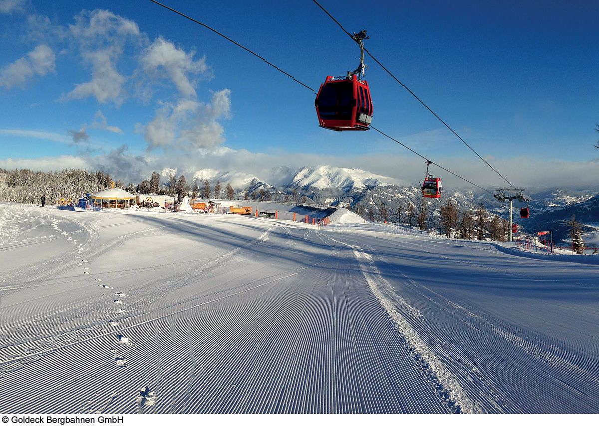 platí pro lyžařský areál Goldeck a dále ve všech střediscích Korutan a Východního Tyrolska; platnost od 1,5 dne