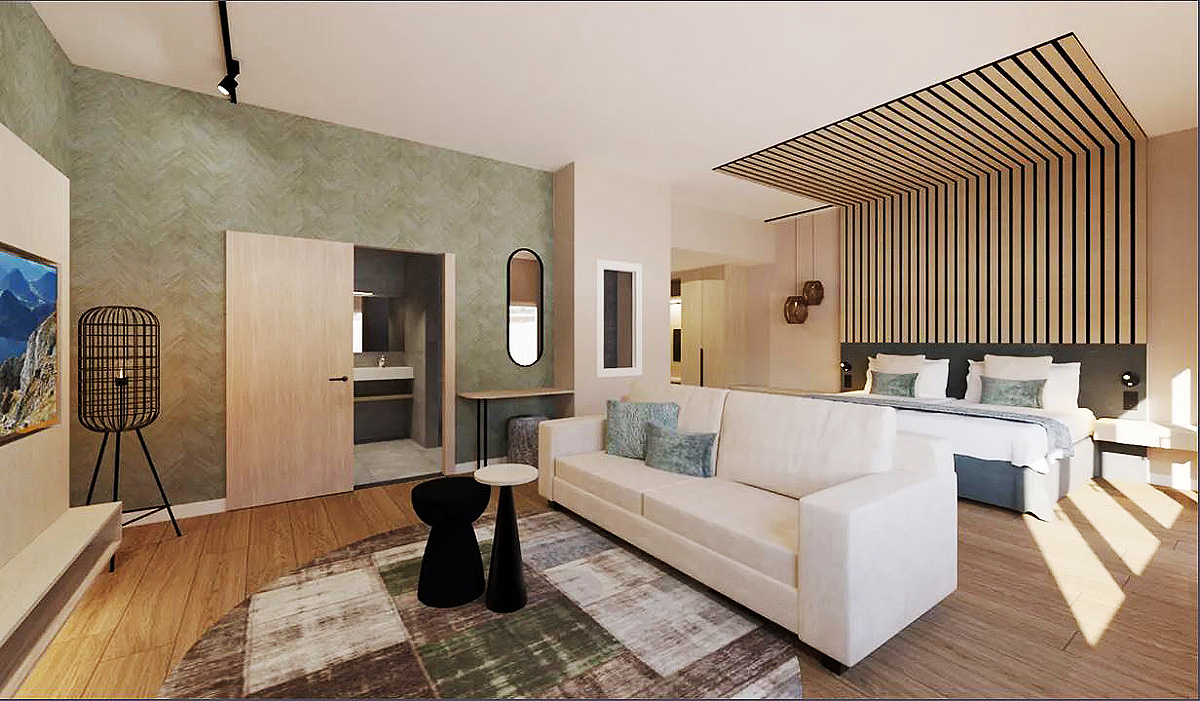 43 až 58 m² - 1 pokoj s manželskou postelí a rozkládacím gaučem či 2 navzájem propojené pokoje s manželskou postelí a možností rozkládacího gauče pro 1 dítě do nedovršených 18 let, 1 až 2x sociální zařízení, zpravidla oddělené WC, balkon; pokoje jsou nově zrekonstruované; minimální obsazenost pokoje jsou 2 dospělé osoby a 1 dítě od 2 let