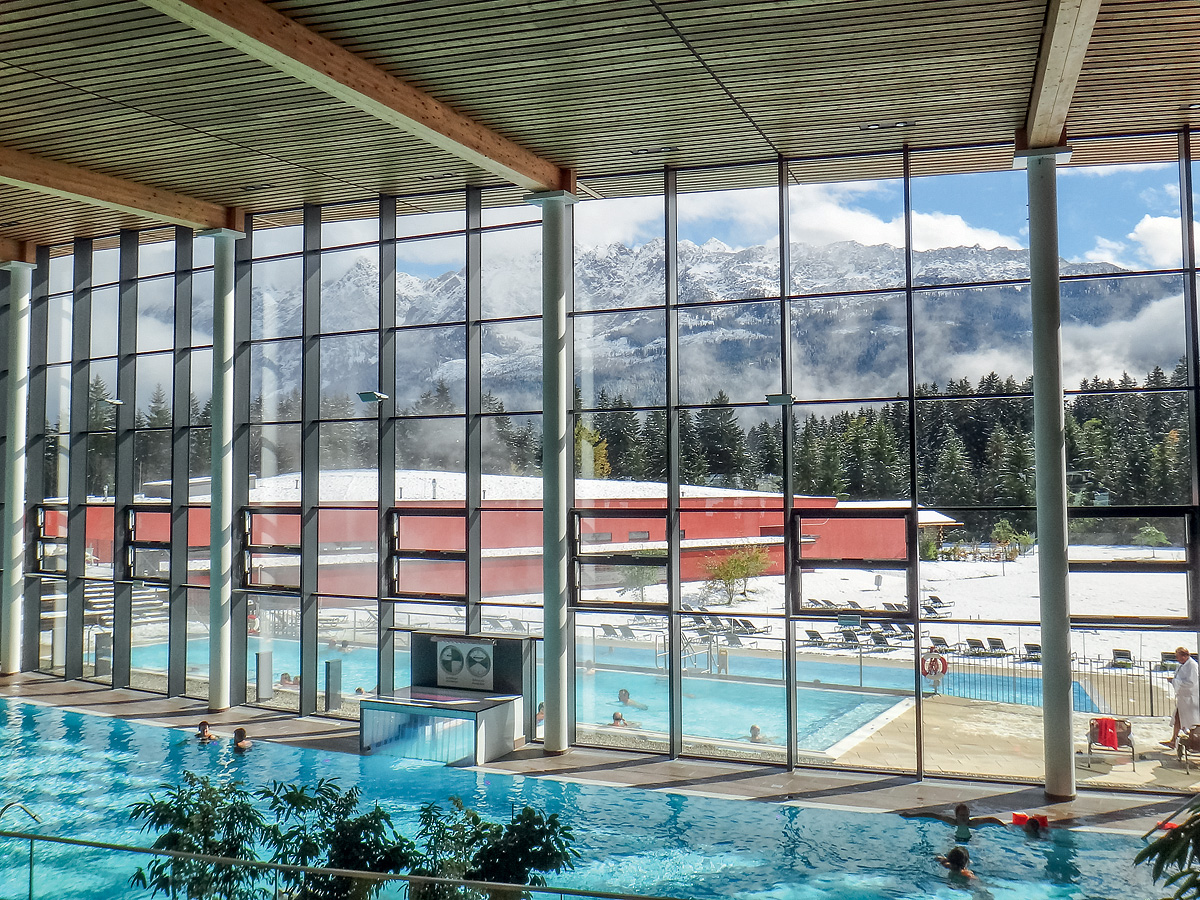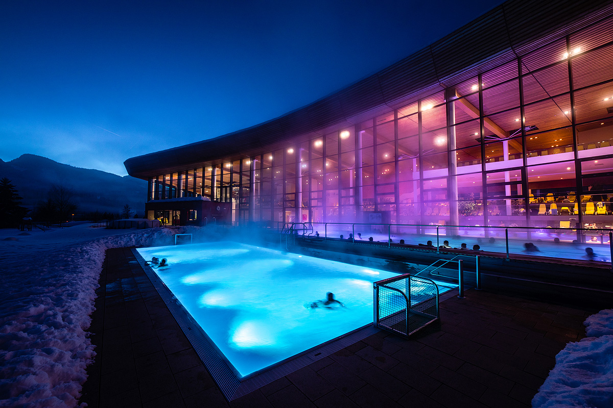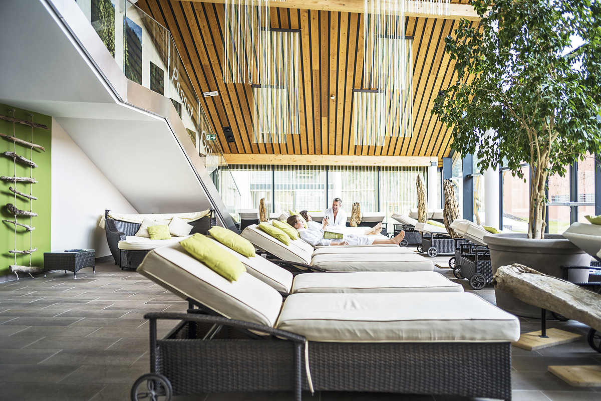 zdarma neomezený vstup do Grimming Therme (propojený s hotelem podzemní chodbou), 3x bazén, 4x venkovní vyhřívaný bazén s termální vodou, dětský bazén s tobogánem, dětské brouzdaliště, saunový svět# (6x vnitřní sauna, 3x venkovní sauna vč. pravidelných rituálů, oddělená sauna pro ženy), relaxační prostory na 5 patrech s lehátky, masáže*, kosmetické služby*, posilovna, sál pro aerobic s programem; služby označené # jsou dětem přístupné až od 16 let