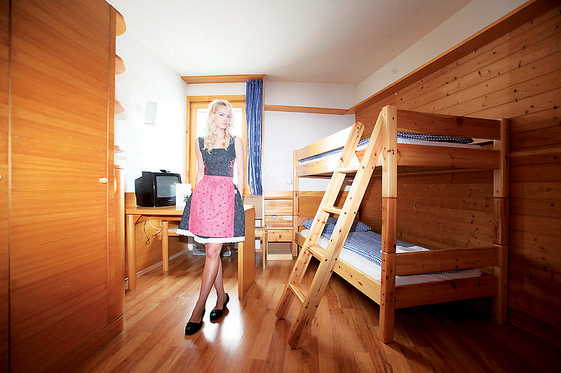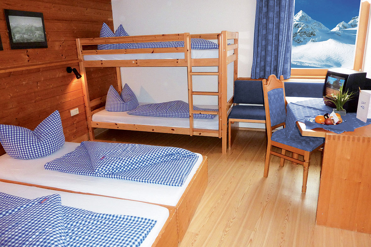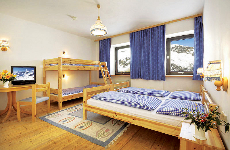 Granatspitz 3/4 - 24 m² - pokoj s manželskou postelí a palandou, sociální zařízení; pokoje jsou vždy ve vedlejší nové budově propojené podzemním tunelem s budovou hlavní; na vyžádání pokoj až pro 5 osob, pouze 1 takový v celém hotelu