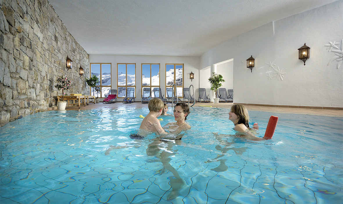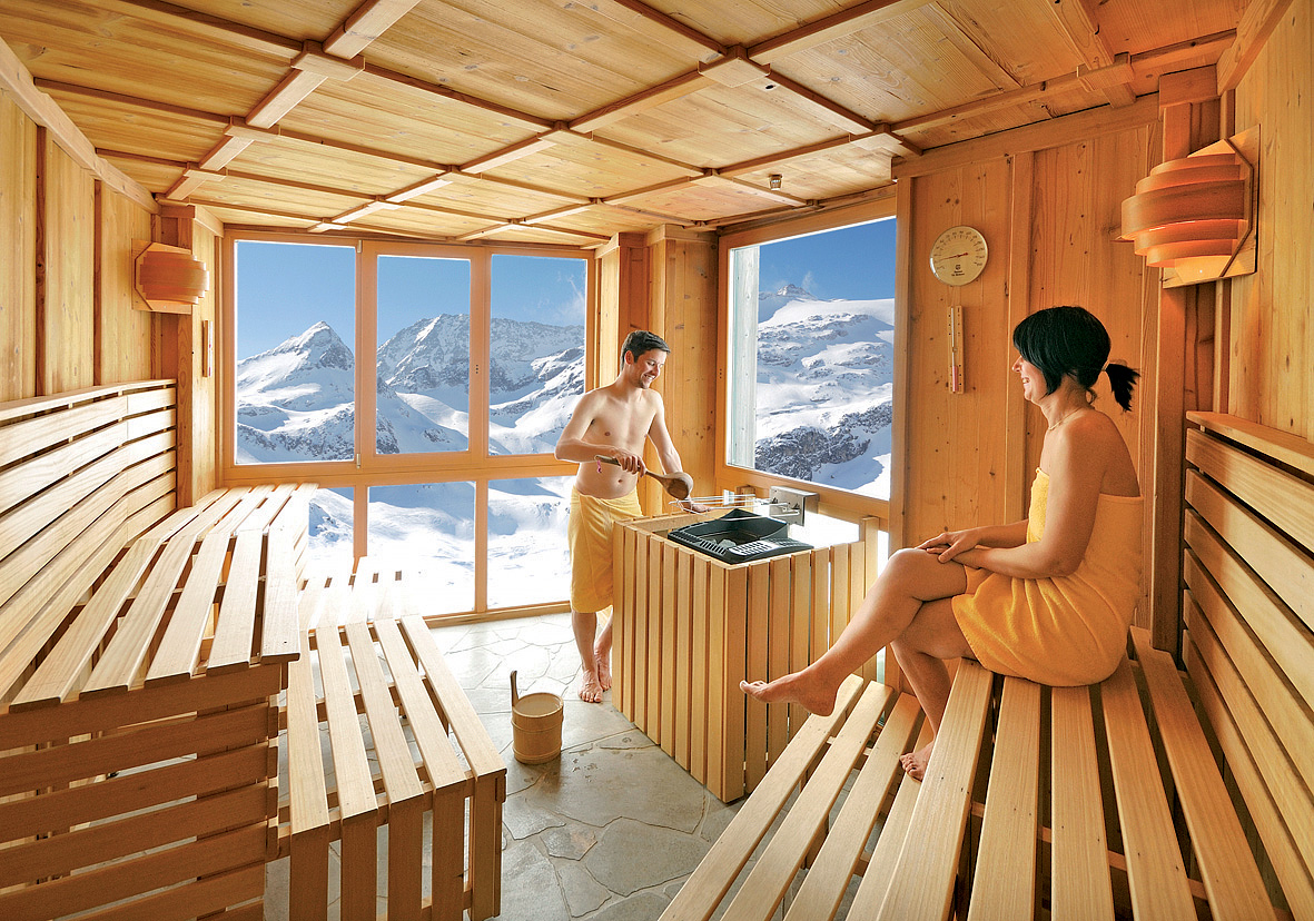 • k regeneraci po náročných sportovních výkonech sloužící krásné relaxační centrum včetně bazénu a 2 saun s panoramatickým výhledem na okolní horské masivy
