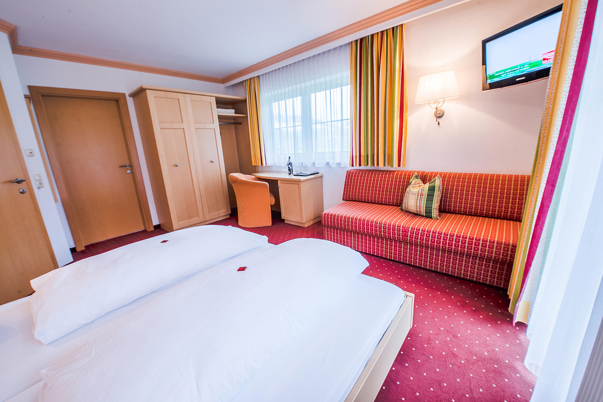 24 m² - pokoj s manželskou postelí a případně rozkládacím gaučem pro 1 osobu a 1 dítě do nedovršených 16 let, sociální zařízení se sprchou či vanou, balkon