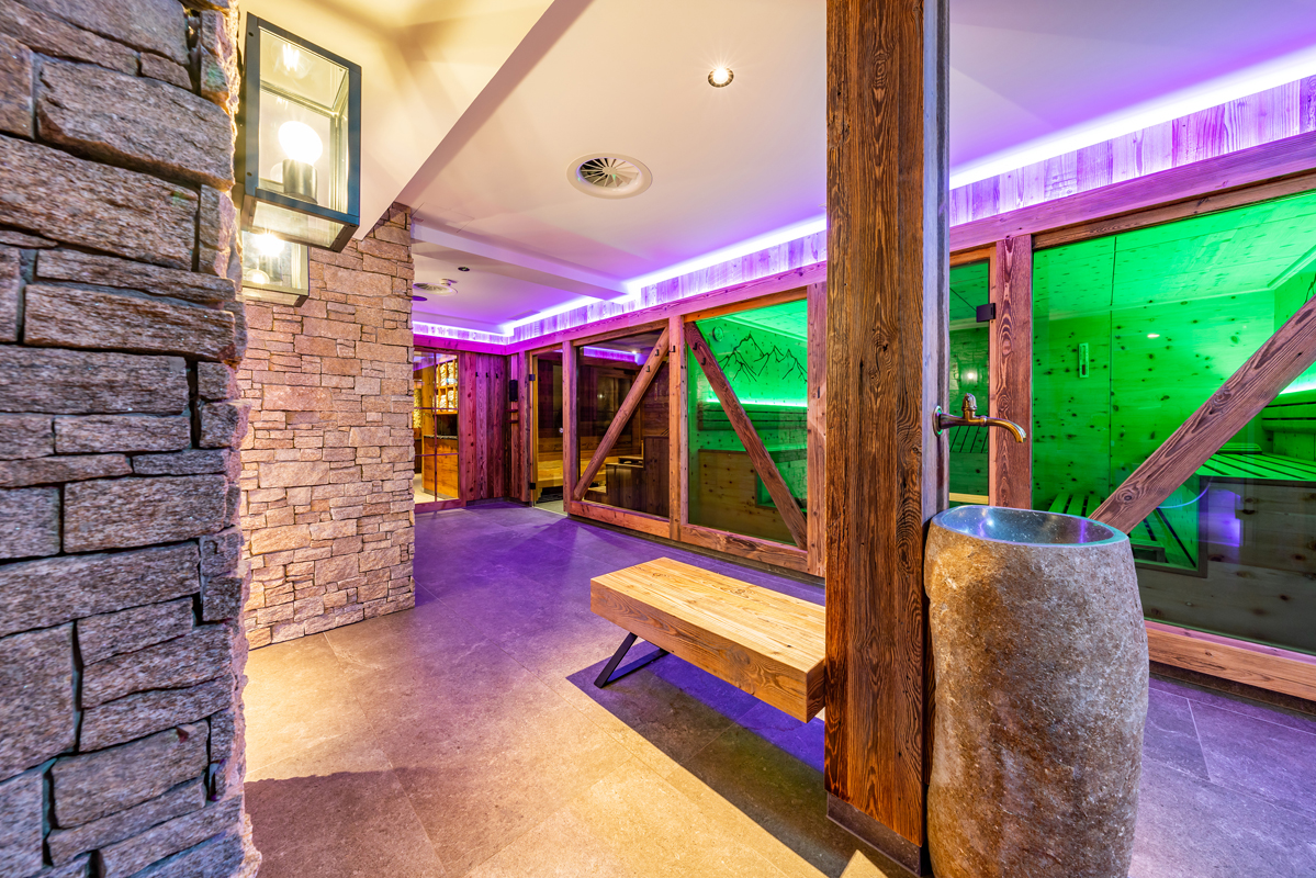 finská sauna#, biosauna#, pára#, aroma jeskyně s ledovým pramenem#, relaxační koutek s lehátky a infra lůžky#, posilovna, masáže*, stolní tenis; služby označené # jsou přístupné pro děti až od 16 let