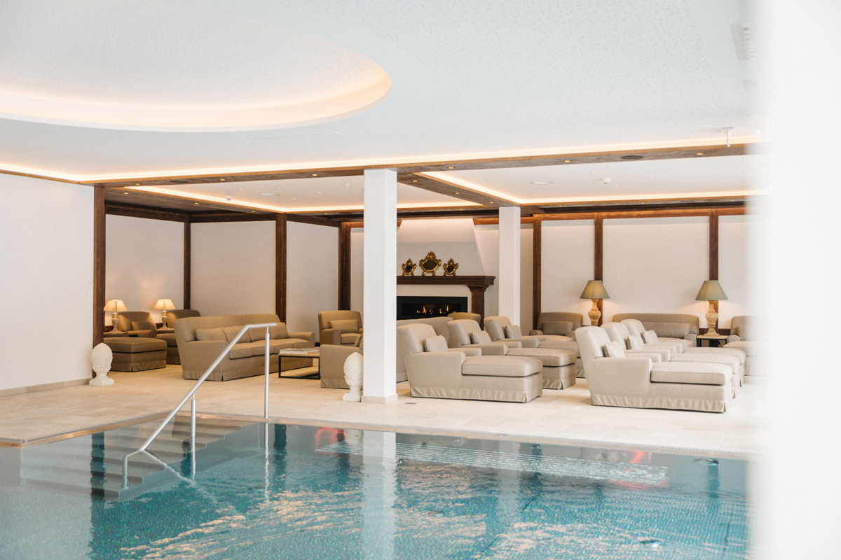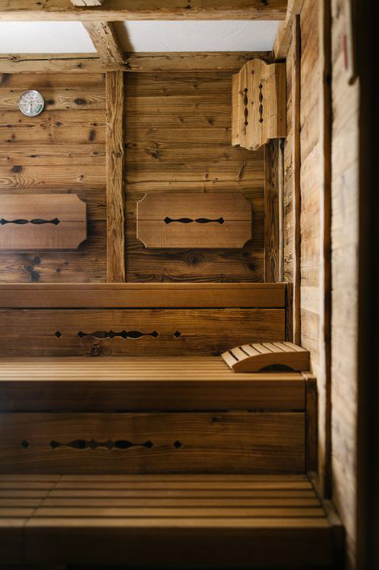 bazén 115 m² propojený s venkovním vyhřívaným bazénem (28 °C), finská sauna, bio sauna, bylinná sauna, rodinná sauna, pára, infrakabina, zážitková sprcha, relaxační koutek s lehátky, posilovna, masáže*, kosmetické služby*