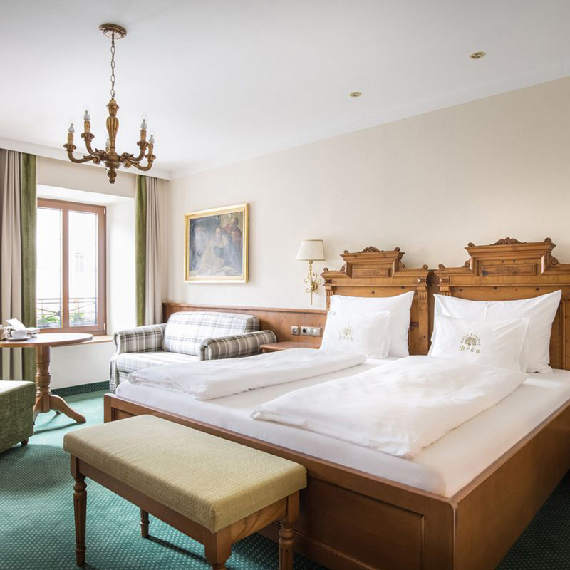 recepce / lobby, restaurace vyhrazená pro hotelové hosty, à la carte restaurace, stylová restaurace "Historische Stuben", bar, kavárna, vlastní malý pivovar, uvítací přípitek, wi-fi připojení k internetu, zimní zahrada, úschovna lyží a lyžařských bot, výtah, vyhrazené parkoviště, garážová stání