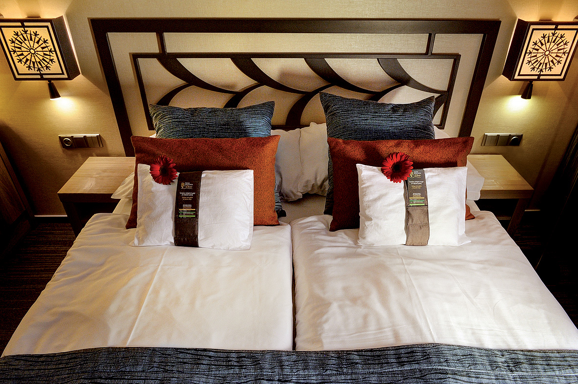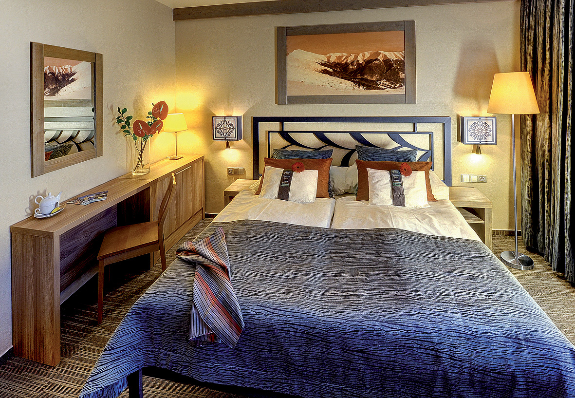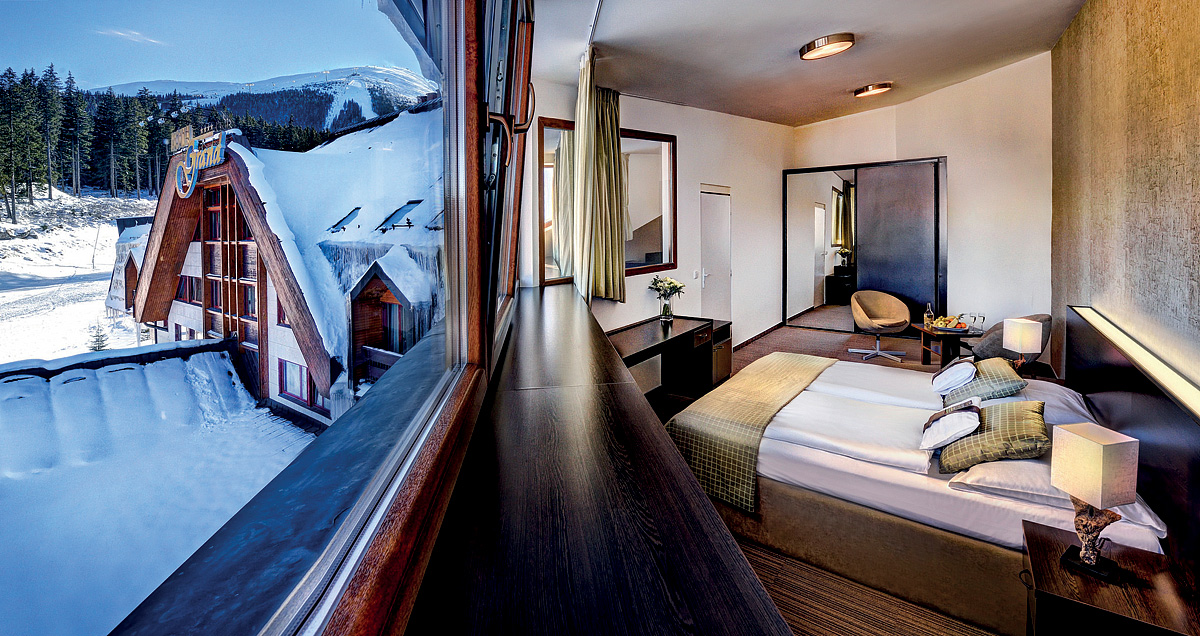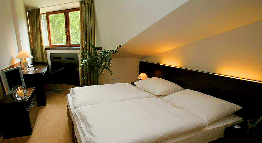 TV sat., telefon, fén, trezor, wi-fi připojení k internetu, minibar, župany a pantofle do wellness