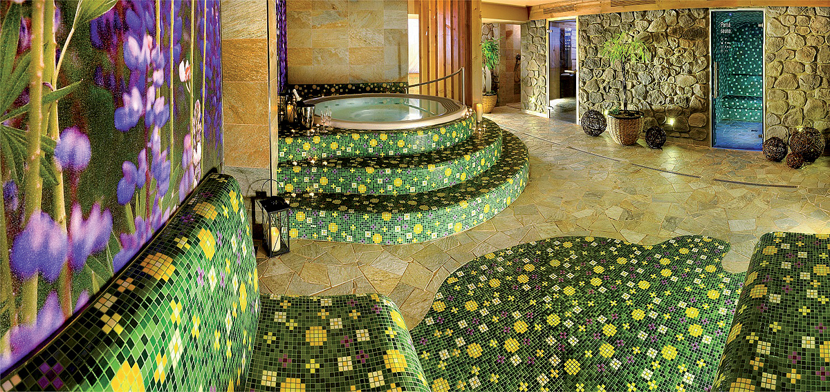 vířivka až pro 6 osob, finská sauna, aromatická sauna, pára, tepidárium, infrakabina, multifunkční sprcha, relaxační koutek s lehátky, masáže*, lázeňské kúry*, velká posilovna, tělocvična, vnitřní míčová hala (volejbal, basketbal, tenis, minifotbal), biliár*, stolní tenis